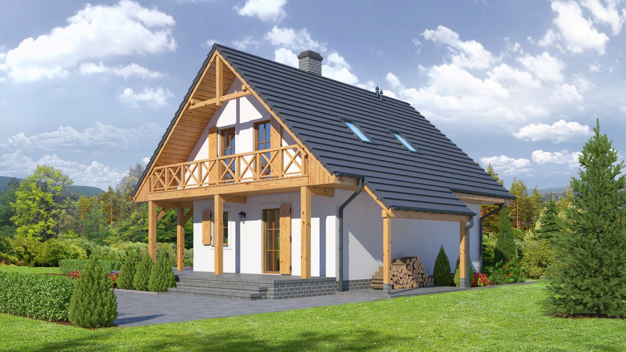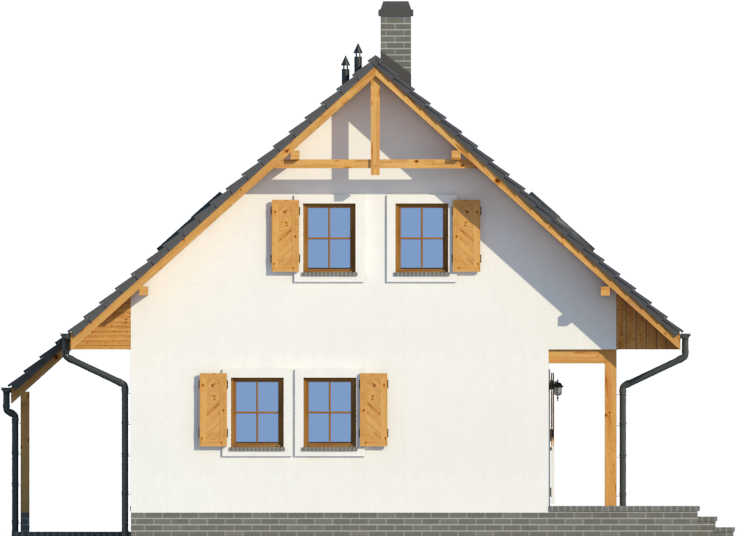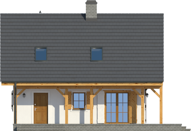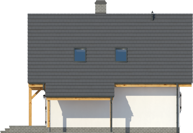 Graficzne opracowanie rzutów poglądowych widocznych na karcie projektu zostało wykonane przez Extradom.pl. Prezentowane przez Extradom.pl wizualizacje wykonane zostały przez autora projektu i należy poczytywać je jedynie za przykład i propozycję wykończenia, wizję architektoniczną autora projektu. Ostateczne wykończenie budynku może nastąpić na wiele sposobów. Szczegółowe rozwiązania zastosowane w oferowanej dokumentacji - w tym również ilość, lokalizacje i wygląd okien, drzwi, kominów - mogą w niewielkim stopniu różnić się od prezentowanej wizualizacji budynku.