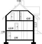 Wys. ścianki kolankowej 1.3 m Ilość drewna na więźbę 7 m³. Strop: płyta żelbetowa. Pokrycie dachu: dachówka ceramiczna. Ściany wewnętrzne: pustaki ceramiczne. Ściany zewnętrzne: pustaki ceramiczne + styropian. Typ ogrzewania: kocioł gazowy.