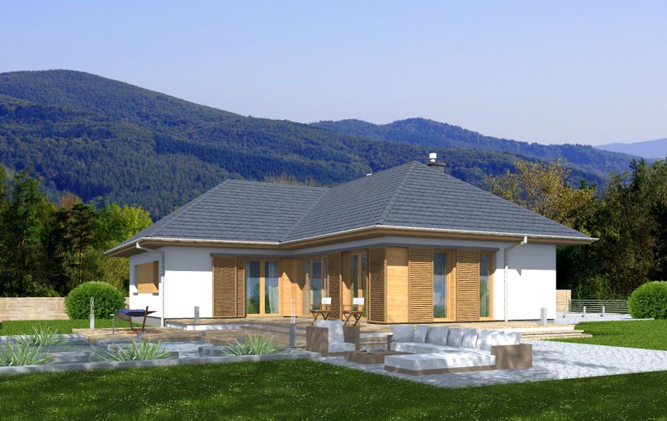 Ściany zewnętrzne: pustak ceramiczny + styropian (aleternatywnie silikaty, gazobeton). Strop: płyta żelbetowa. Ogrzewanie: kocioł gazowy. Dach: dachówka ceramiczny lub cementowa lub blachodachówka.