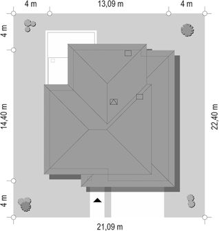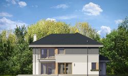 Graficzne opracowanie rzutów poglądowych widocznych na karcie projektu zostało wykonane przez Extradom.pl. Prezentowane przez Extradom.pl wizualizacje wykonane zostały przez autora projektu i należy poczytywać je jedynie za przykład i propozycję wykończenia, wizję architektoniczną autora projektu. Ostateczne wykończenie budynku może nastąpić na wiele sposobów. Szczegółowe rozwiązania zastosowane w oferowanej dokumentacji - w tym również ilość, lokalizacje i wygląd okien, drzwi, kominów - mogą w niewielkim stopniu różnić się od prezentowanej wizualizacji budynku.