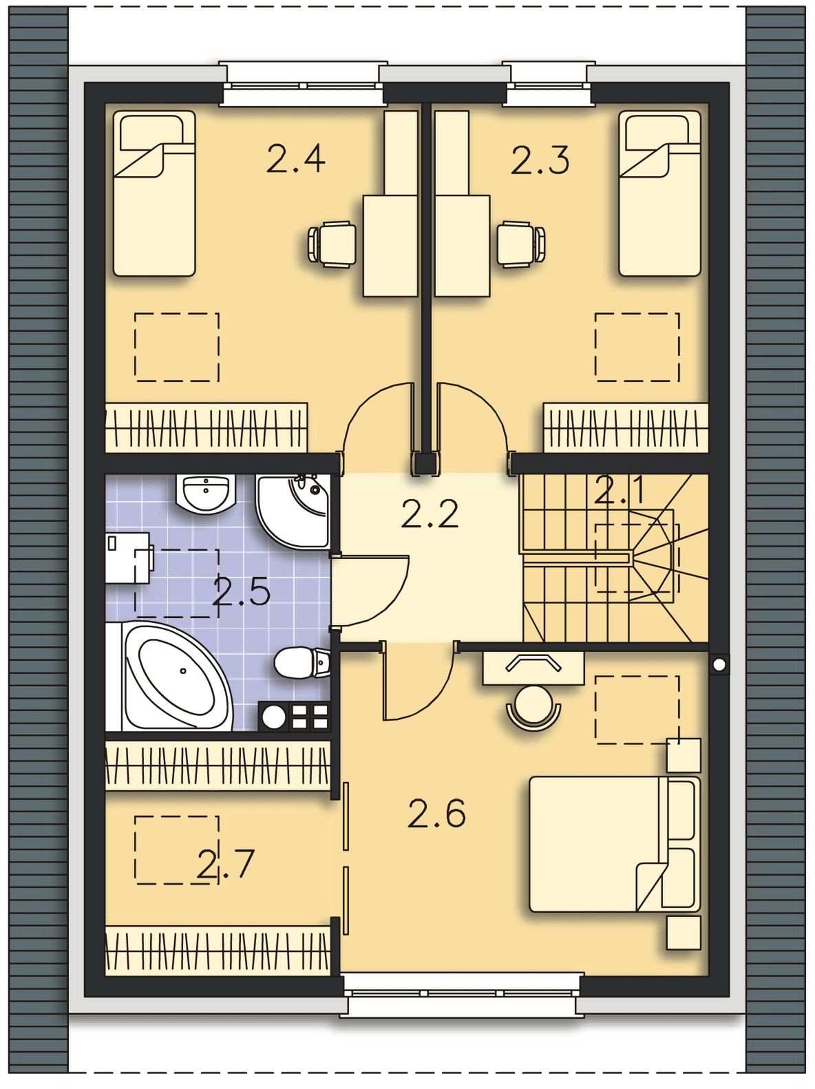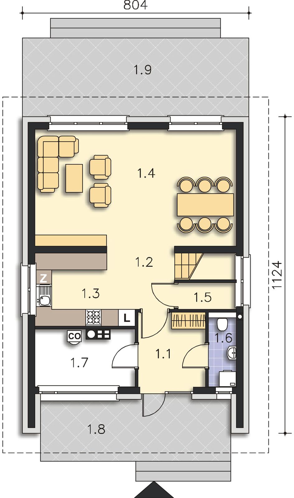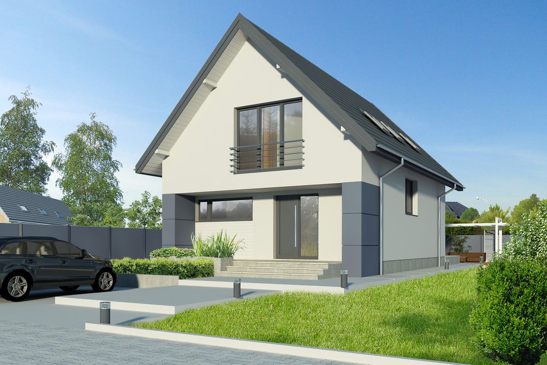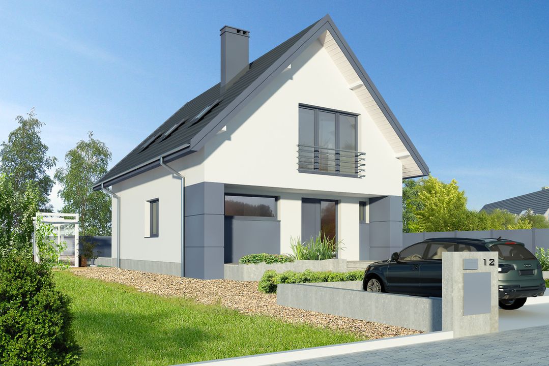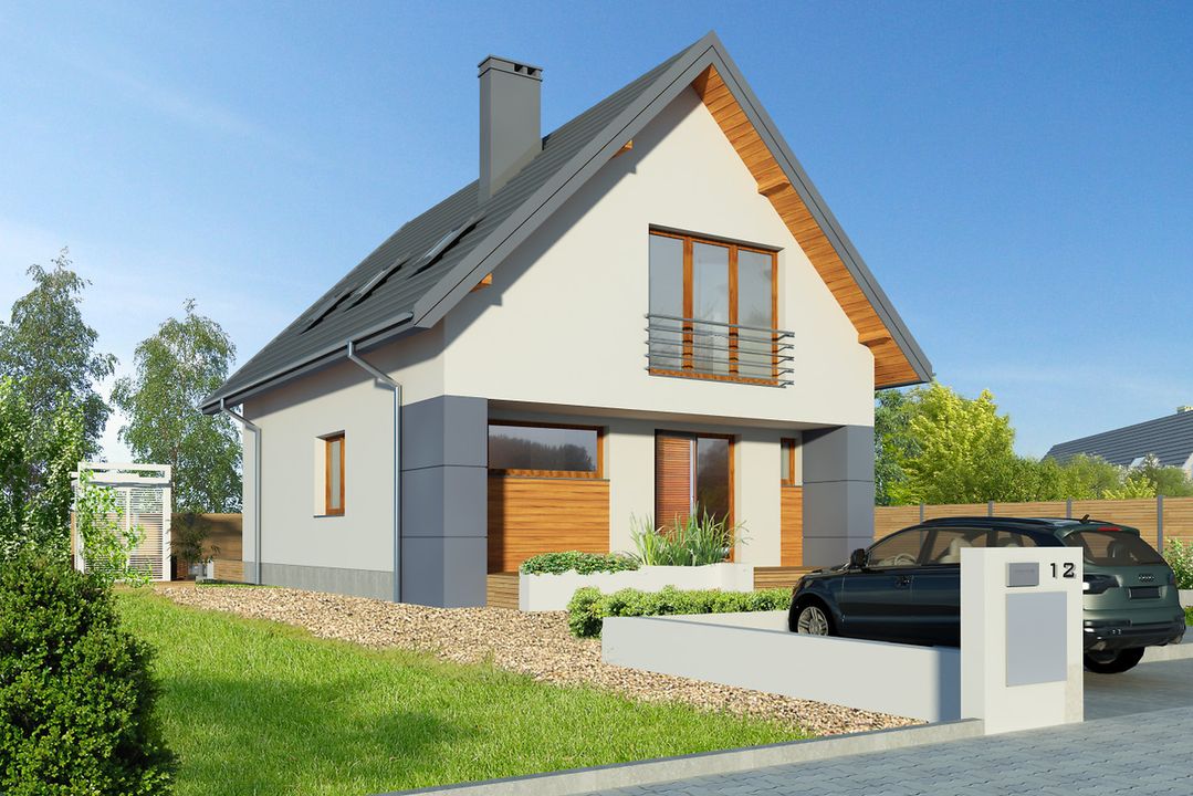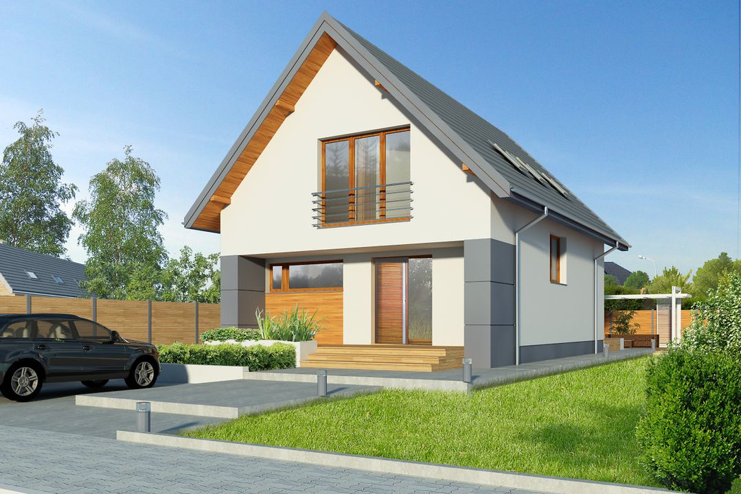 Graficzne opracowanie rzutów poglądowych widocznych na karcie projektu zostało wykonane przez Extradom.pl. Prezentowane przez Extradom.pl wizualizacje wykonane zostały przez autora projektu i należy poczytywać je jedynie za przykład i propozycję wykończenia, wizję architektoniczną autora projektu. Ostateczne wykończenie budynku może nastąpić na wiele sposobów. Szczegółowe rozwiązania zastosowane w oferowanej dokumentacji - w tym również ilość, lokalizacje i wygląd okien, drzwi, kominów - mogą w niewielkim stopniu różnić się od prezentowanej wizualizacji budynku.