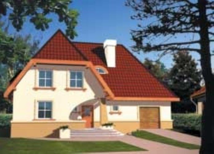 Graficzne opracowanie rzutów poglądowych widocznych na karcie projektu zostało wykonane przez Extradom.pl. Prezentowane przez Extradom.pl wizualizacje wykonane zostały przez autora projektu i należy poczytywać je jedynie za przykład i propozycję wykończenia, wizję architektoniczną autora projektu. Ostateczne wykończenie budynku może nastąpić na wiele sposobów. Szczegółowe rozwiązania zastosowane w oferowanej dokumentacji - w tym również ilość, lokalizacje i wygląd okien, drzwi, kominów - mogą w niewielkim stopniu różnić się od prezentowanej wizualizacji budynku.