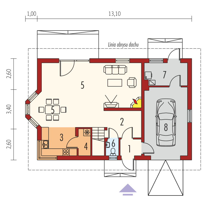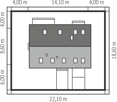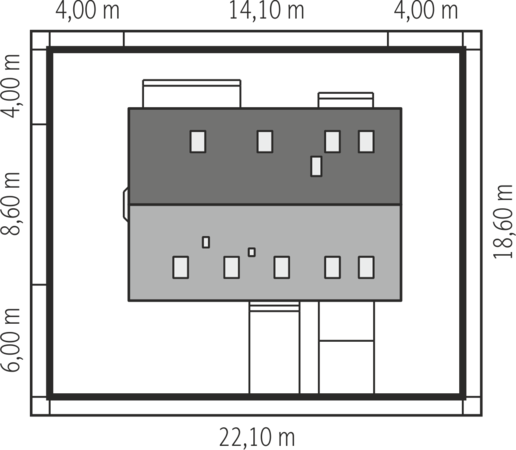 Graficzne opracowanie rzutów poglądowych widocznych na karcie projektu zostało wykonane przez Extradom.pl. Prezentowane przez Extradom.pl wizualizacje wykonane zostały przez autora projektu i należy poczytywać je jedynie za przykład i propozycję wykończenia, wizję architektoniczną autora projektu. Ostateczne wykończenie budynku może nastąpić na wiele sposobów. Szczegółowe rozwiązania zastosowane w oferowanej dokumentacji - w tym również ilość, lokalizacje i wygląd okien, drzwi, kominów - mogą w niewielkim stopniu różnić się od prezentowanej wizualizacji budynku.