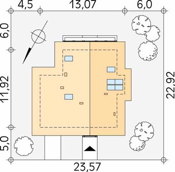 Graficzne opracowanie rzutów poglądowych widocznych na karcie projektu zostało wykonane przez Extradom.pl. Prezentowane przez Extradom.pl wizualizacje wykonane zostały przez autora projektu i należy poczytywać je jedynie za przykład i propozycję wykończenia, wizję architektoniczną autora projektu. Ostateczne wykończenie budynku może nastąpić na wiele sposobów. Szczegółowe rozwiązania zastosowane w oferowanej dokumentacji - w tym również ilość, lokalizacje i wygląd okien, drzwi, kominów - mogą w niewielkim stopniu różnić się od prezentowanej wizualizacji budynku.