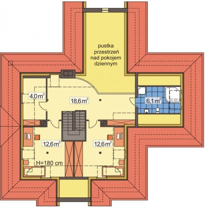 Strop: gęstożebrowy Teriva I. Ściany zewnętrzne: gazobeton 36,5cm. Pokrycie dachowe: dachówka ceramiczna. Okna połaciowe: Velux.