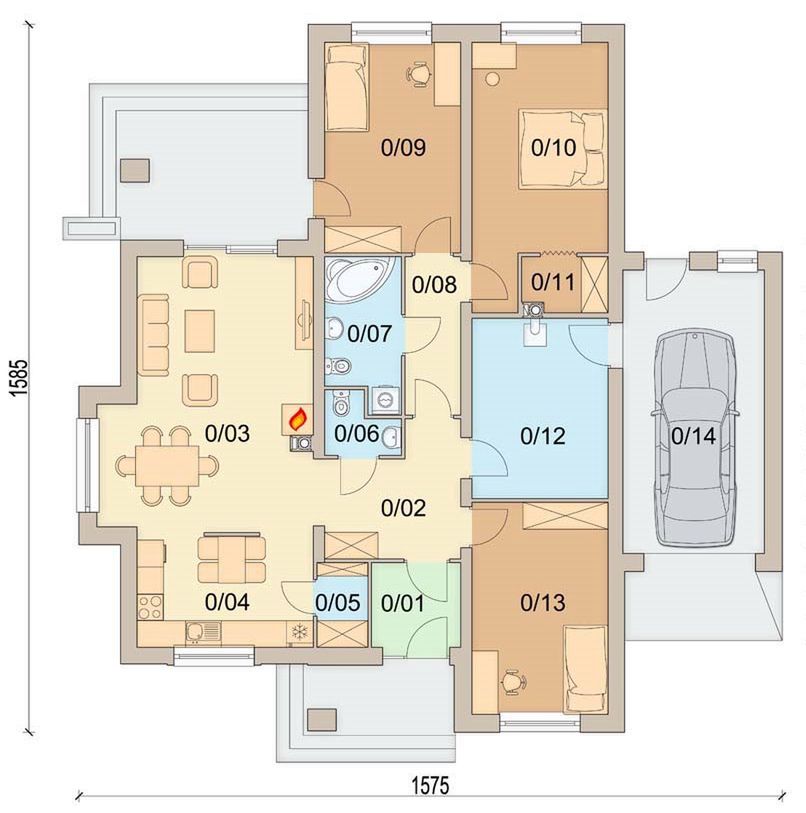 Gdy wraz z żoną zaczęliśmy poszukiwania idealnego projektu domu, priorytetem było, aby wszystkie uwzględnione w nim pomieszczenia znajdowały się na jednej kondygnacji. Spośród propozycji budynków parterowych naszą uwagę przykuł projekt domu Szafran G1 WOF1048, który pod względem wizualnym wyjątkowo przypadł nam do gustu. Dokonując analizy układu pomieszczeń doszliśmy do wniosku, że wnętrze jest w pełni funkcjonalne i spełnia nasze oczekiwania, dlatego też finalnie zdecydowaliśmy się na jego zakup.Budowa przebiegła naprawdę sprawnie i po naszej myśli. Dokumentacja techniczna została odpowiednio sporządzona, jednak uważam że warto bliżej przyjrzeć się konstrukcji więźby dachowej. Wykonanie dachu znajdującego się nad wykuszem nie zostało jasno sprecyzowane na rysunkach projektowych, dlatego też musieliśmy nieco pomyśleć jak to dobrze wykonać. Oprócz tego warto zwrócić uwagę na wymiary belek tworzących więźbę, gdyż oryginalnie murłaty posiadają wym. 14x14 cm, zaś płatwie 10x20 cm. Nie jest to do końca trafione, gdyż drewno łączy się w odpowiedni sposób w momencie gdy belki posiadają te same wielkości. Na szczęście sam posiadam doświadczenie w tej dziedzinie i z pomocą fachowców ze wszystkim świetnie sobie poradziliśmy.Cała inwestycja trwała stosunkowo krótko, gdyż od uzyskania pozwolenia na budowę, do wprowadzenia się do nowego, w pełni wykończonego domu minęło zaledwie 1,5 roku. Zarówno zewnętrzne, jak i wewnętrzne ściany zostały wymurowane z ceramicznych pustaków Porotherm, zaś strop wykonaliśmy systemem Teriva. Póki co dach w całości odeskowaliśmy i pokryliśmy papą - pokryciem właściwym zamierzamy zająć się w późniejszym czasie. Oszacowany przez architekta kosztorys został moim zdaniem bardzo dobrze wyliczony i uważam, że zmieszczenie się w podanej kwocie jest w pełni realne.Duży wpływ na wybór projektu domu Szafran G1 WOF1048 miał dla nas przewidziany w nim wewnętrzny układ, który od samego początku dopasowany był do naszych potrzeb. Z tego względu jedyne zmiany, które wprowadziliśmy dotyczyły stolarki otworowej oraz wyrównania ścianki działowej między łazienkami. Wyjście z garażu bezpośrednio na zewnątrz wydało mi się zbędne, dlatego też postanowiłem z niego zrezygnować. Uzyskaną w ten sposób wolną przestrzeń na ścianie przeznaczyłem na zawieszenie regałów, co było bardzo praktycznym rozwiązaniem. Oprócz tego, znajdujące się w nim okno przeniosłem na drugą ścianę, które teraz dodatkowo doświetla kotłownię, gdyż między tymi pomieszczeniami wstawiłem szklane drzwi. Dobrym pomysłem była także rezygnacja z wyjścia na taras z sypialni, dzięki czemu pokój stał się bardziej ustawny. Zewnętrzne słupy w całości wymurowałem z cegły, gdyż uważam że jest to lepsze rozwiązanie zarówno pod względem trwałości jak i wizualnie.Jesteśmy zadowoleni z wyboru projektu domu parterowego Szafran G1 WOF1048. To naprawdę funkcjonalnie przemyślany projekt i tym samym nowy dom w całości nas satysfakcjonuje. Wnętrze jest wygodne w codziennym użytkowaniu i w dalszym ciągu dostrzegam w nim same zalety. Szczególnie praktycznym rozwiązaniem jest jego wyraźny podział na strefę dzienną, w której spędzamy większość czasu oraz część nocną z sypialniami domowników. Jesteśmy 3-osobową rodziną, a metraż domu jest dla nas w pełni komfortowy. Uważam, że przy czwórce osób będzie mieszkać się równie wygodnie, a nawet podejrzewam, że gdyby dwójka dzieci mogła użytkować jeden pokój, taka powierzchnia zadowoli 5-osobową rodzinę. Pozdrawiam.