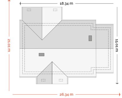 Graficzne opracowanie rzutów poglądowych widocznych na karcie projektu zostało wykonane przez Extradom.pl. Prezentowane przez Extradom.pl wizualizacje wykonane zostały przez autora projektu i należy poczytywać je jedynie za przykład i propozycję wykończenia, wizję architektoniczną autora projektu. Ostateczne wykończenie budynku może nastąpić na wiele sposobów. Szczegółowe rozwiązania zastosowane w oferowanej dokumentacji - w tym również ilość, lokalizacje i wygląd okien, drzwi, kominów - mogą w niewielkim stopniu różnić się od prezentowanej wizualizacji budynku.