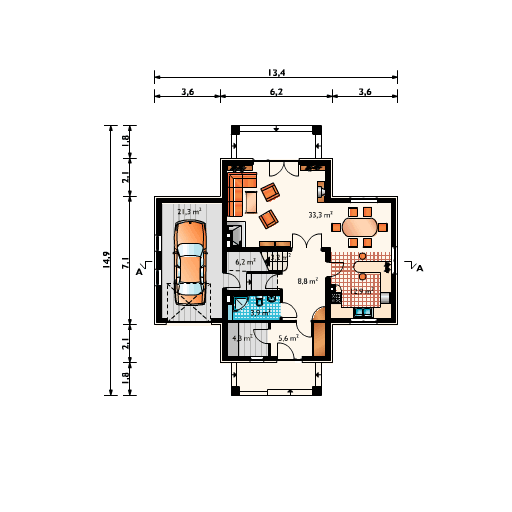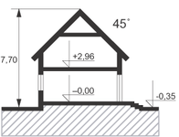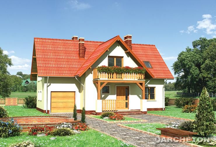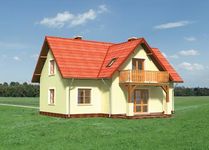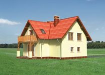 Graficzne opracowanie rzutów poglądowych widocznych na karcie projektu zostało wykonane przez Extradom.pl. Prezentowane przez Extradom.pl wizualizacje wykonane zostały przez autora projektu i należy poczytywać je jedynie za przykład i propozycję wykończenia, wizję architektoniczną autora projektu. Ostateczne wykończenie budynku może nastąpić na wiele sposobów. Szczegółowe rozwiązania zastosowane w oferowanej dokumentacji - w tym również ilość, lokalizacje i wygląd okien, drzwi, kominów - mogą w niewielkim stopniu różnić się od prezentowanej wizualizacji budynku.