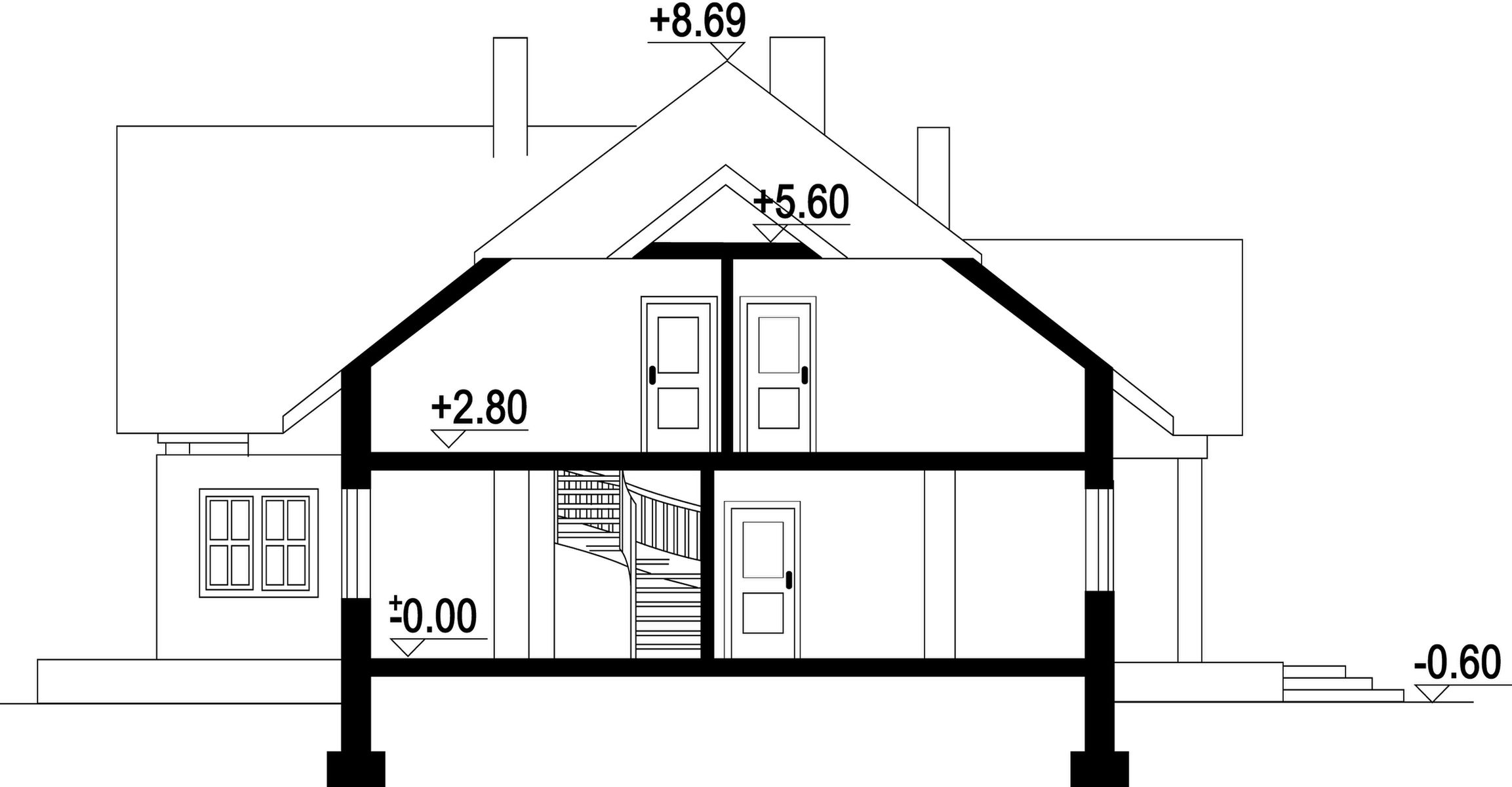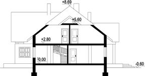 Wysokość ścianki kolankowej: 0.92 m. Ilość drewna na więźbę: 14.51 m³. Strop: płyta żelbetowa. Pokrycie dachu: dachówka ceramiczna. Ściany zewnętrzne: pustaki ceramiczne + styropian. Ściany wewnętrzne: pustaki ceramiczne. Typ ogrzewania: kocioł gazowy.