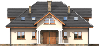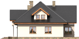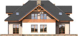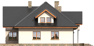 Graficzne opracowanie rzutów poglądowych widocznych na karcie projektu zostało wykonane przez Extradom.pl. Prezentowane przez Extradom.pl wizualizacje wykonane zostały przez autora projektu i należy poczytywać je jedynie za przykład i propozycję wykończenia, wizję architektoniczną autora projektu. Ostateczne wykończenie budynku może nastąpić na wiele sposobów. Szczegółowe rozwiązania zastosowane w oferowanej dokumentacji - w tym również ilość, lokalizacje i wygląd okien, drzwi, kominów - mogą w niewielkim stopniu różnić się od prezentowanej wizualizacji budynku.