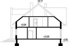 Wys. ścianki kolankowej 1.16 m Ilość drewna na więźbę 17.7 m³. Strop: płyta żelbetowa. Pokrycie dachu: dachówka ceramiczna. Ściany wewnętrzne: pustaki ceramiczne. Ściany zewnętrzne: pustaki ceramiczne + styropian. Typ ogrzewania: kocioł gazowy.