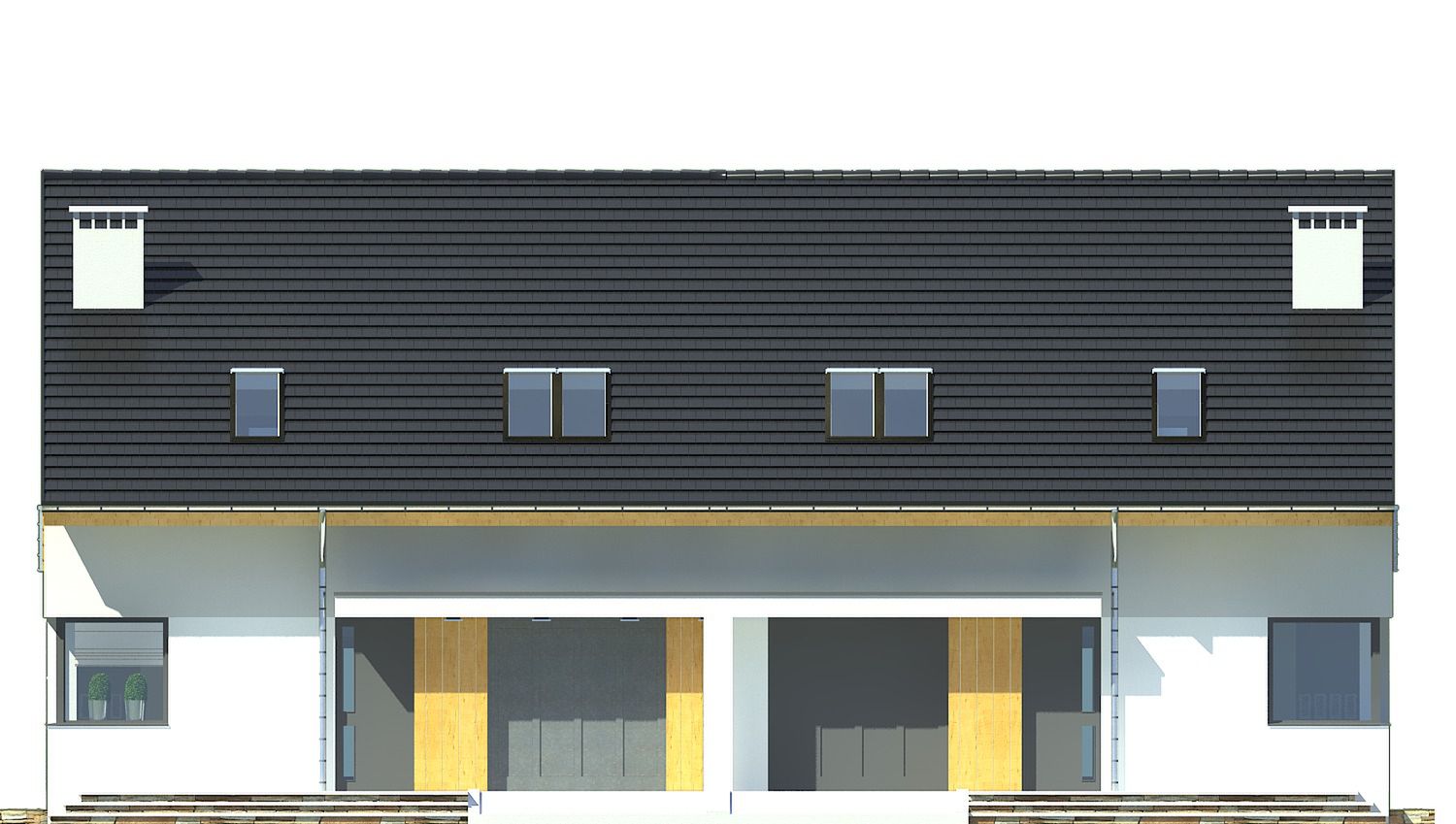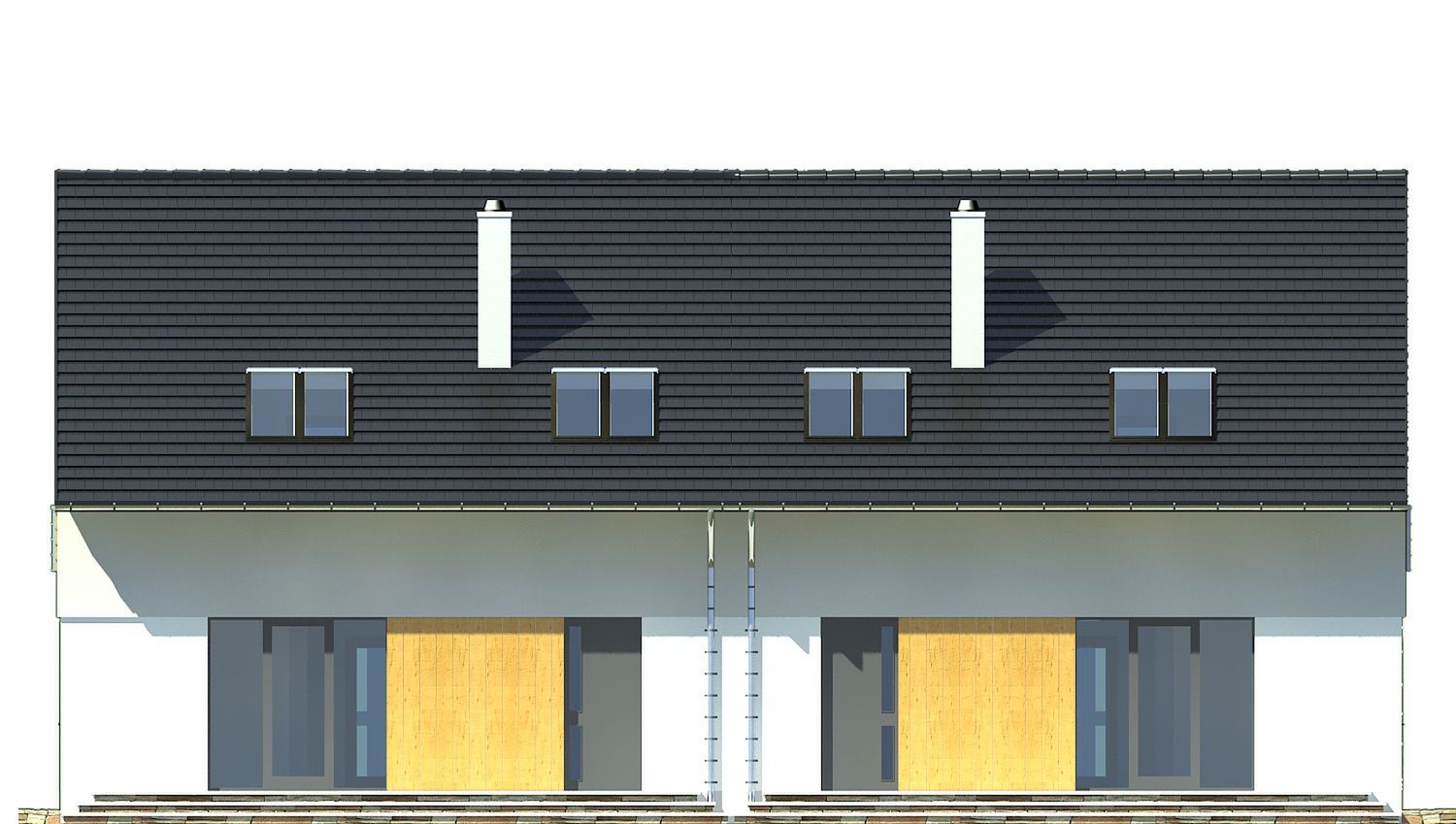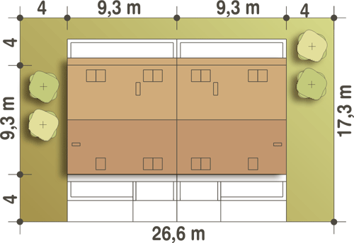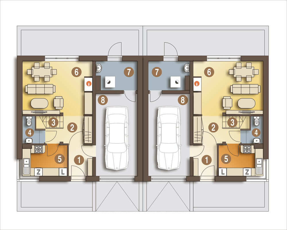 Projekt wymaga aktualizacji. Przy zakupie projektu należy zapłacić 50% zaliczki. Zaliczka jest bezzwrotna w przypadku zwrotu lub rezygnacji z zamówienia. Budynek dwulokalowy posadowiony na wspólnym fundamencie. Jeśli planujesz budowę na osobnych działkach zamów pojedyncze segmenty: podstawa + lustro.
