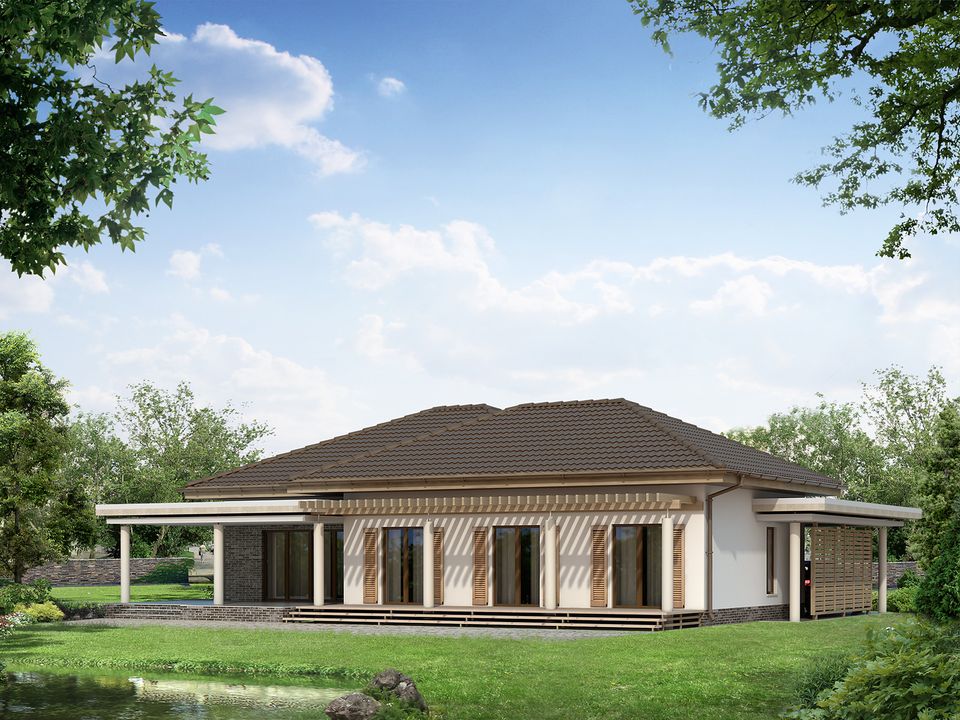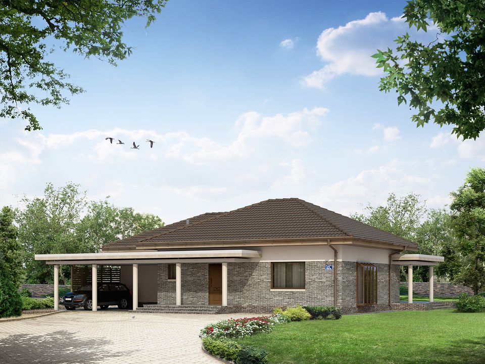 Graficzne opracowanie rzutów poglądowych widocznych na karcie projektu zostało wykonane przez Extradom.pl. Prezentowane przez Extradom.pl wizualizacje wykonane zostały przez autora projektu i należy poczytywać je jedynie za przykład i propozycję wykończenia, wizję architektoniczną autora projektu. Ostateczne wykończenie budynku może nastąpić na wiele sposobów. Szczegółowe rozwiązania zastosowane w oferowanej dokumentacji - w tym również ilość, lokalizacje i wygląd okien, drzwi, kominów - mogą w niewielkim stopniu różnić się od prezentowanej wizualizacji budynku.