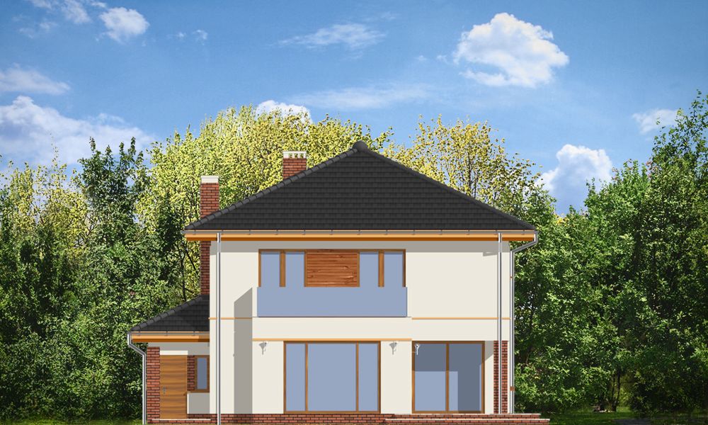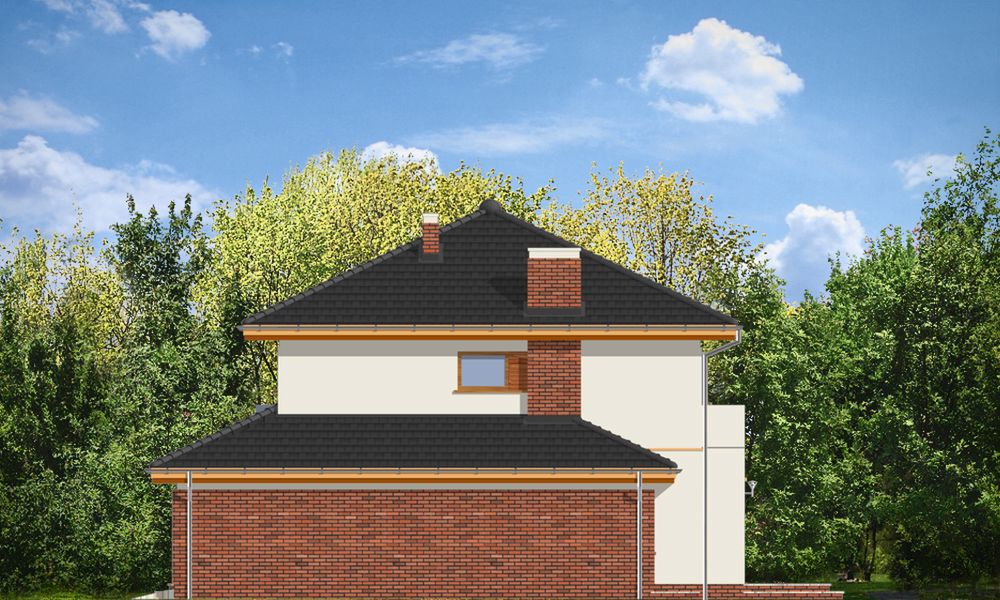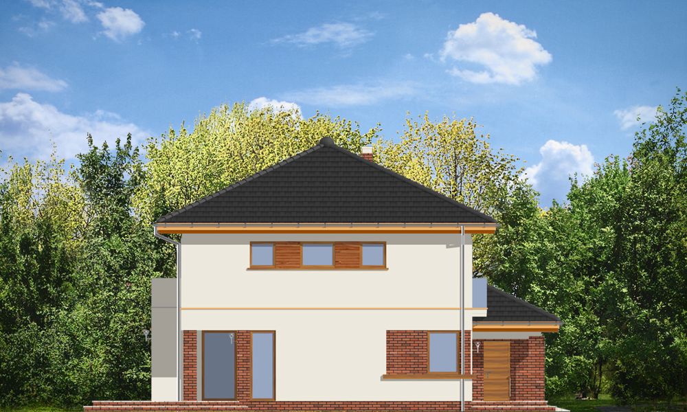 Graficzne opracowanie rzutów poglądowych widocznych na karcie projektu zostało wykonane przez Extradom.pl. Prezentowane przez Extradom.pl wizualizacje wykonane zostały przez autora projektu i należy poczytywać je jedynie za przykład i propozycję wykończenia, wizję architektoniczną autora projektu. Ostateczne wykończenie budynku może nastąpić na wiele sposobów. Szczegółowe rozwiązania zastosowane w oferowanej dokumentacji - w tym również ilość, lokalizacje i wygląd okien, drzwi, kominów - mogą w niewielkim stopniu różnić się od prezentowanej wizualizacji budynku.