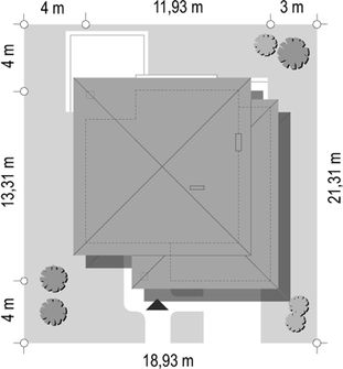 Fundamenty: betonowe wylewane. Ściany zewnętrzne: dwuwarstwowe porotherm 25 + 18 styropian (lub wełna mineralna). Strop: Teriva. Elewacje: tynk cienkowarstwowy. Pokrycie dachu: blachodachówka lub dachówka. Nachylenie dachu: 25 stopni.