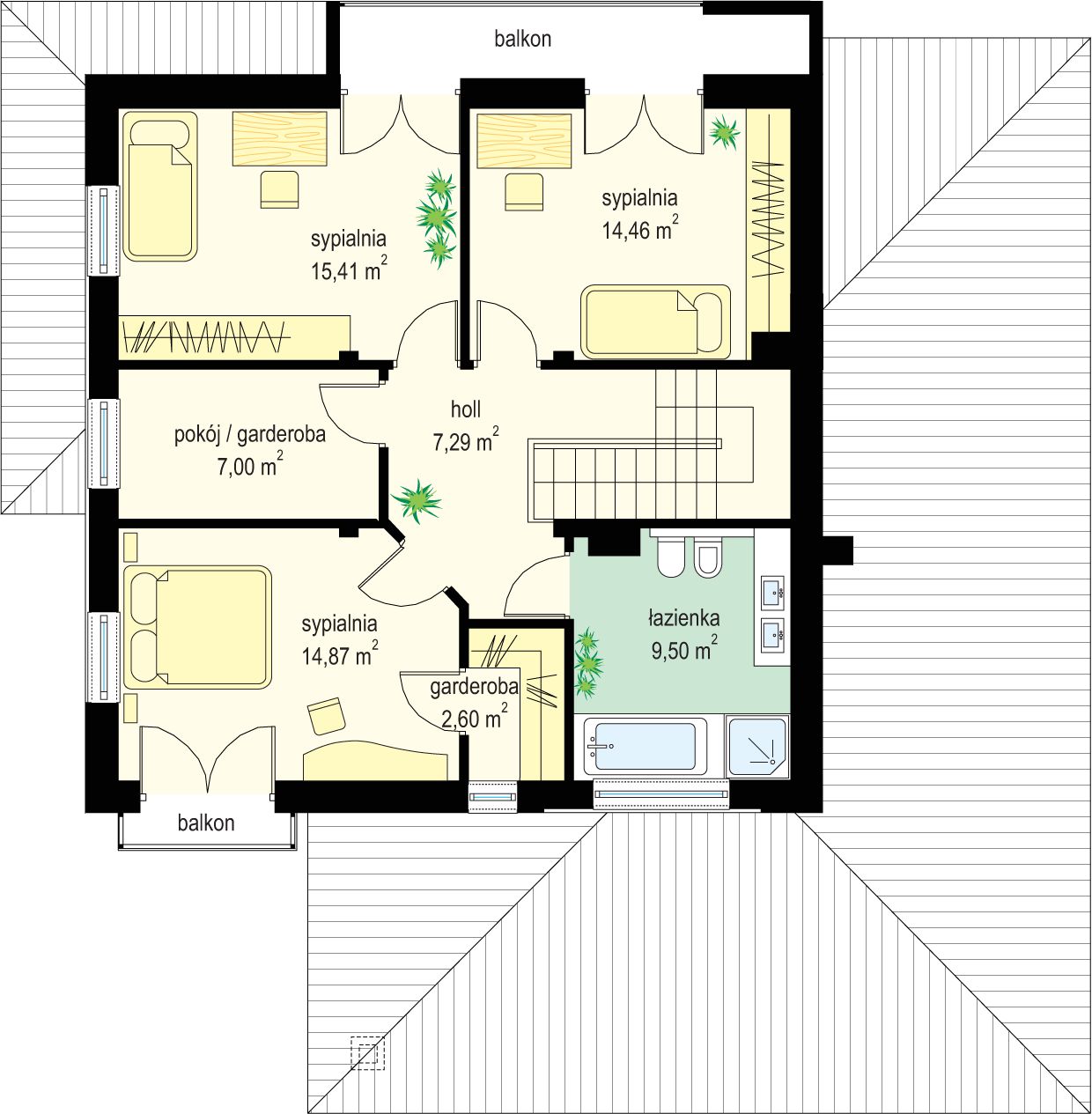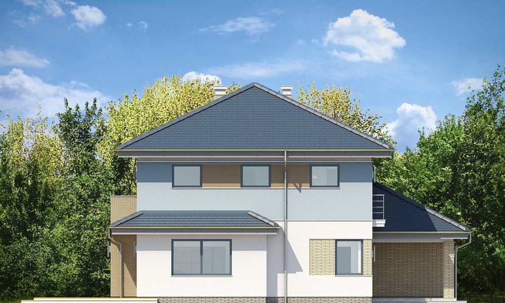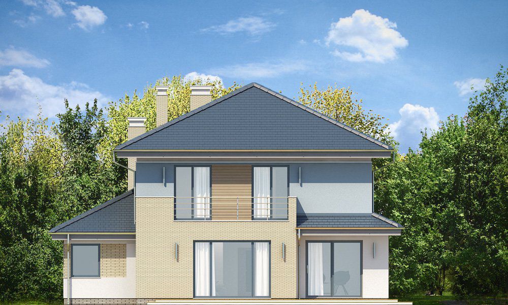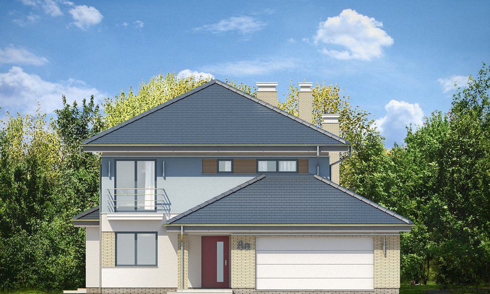 Graficzne opracowanie rzutów poglądowych widocznych na karcie projektu zostało wykonane przez Extradom.pl. Prezentowane przez Extradom.pl wizualizacje wykonane zostały przez autora projektu i należy poczytywać je jedynie za przykład i propozycję wykończenia, wizję architektoniczną autora projektu. Ostateczne wykończenie budynku może nastąpić na wiele sposobów. Szczegółowe rozwiązania zastosowane w oferowanej dokumentacji - w tym również ilość, lokalizacje i wygląd okien, drzwi, kominów - mogą w niewielkim stopniu różnić się od prezentowanej wizualizacji budynku.