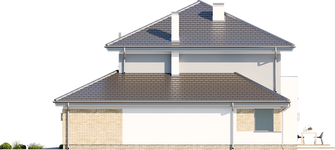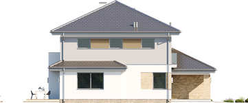 Graficzne opracowanie rzutów poglądowych widocznych na karcie projektu zostało wykonane przez Extradom.pl. Prezentowane przez Extradom.pl wizualizacje wykonane zostały przez autora projektu i należy poczytywać je jedynie za przykład i propozycję wykończenia, wizję architektoniczną autora projektu. Ostateczne wykończenie budynku może nastąpić na wiele sposobów. Szczegółowe rozwiązania zastosowane w oferowanej dokumentacji - w tym również ilość, lokalizacje i wygląd okien, drzwi, kominów - mogą w niewielkim stopniu różnić się od prezentowanej wizualizacji budynku.