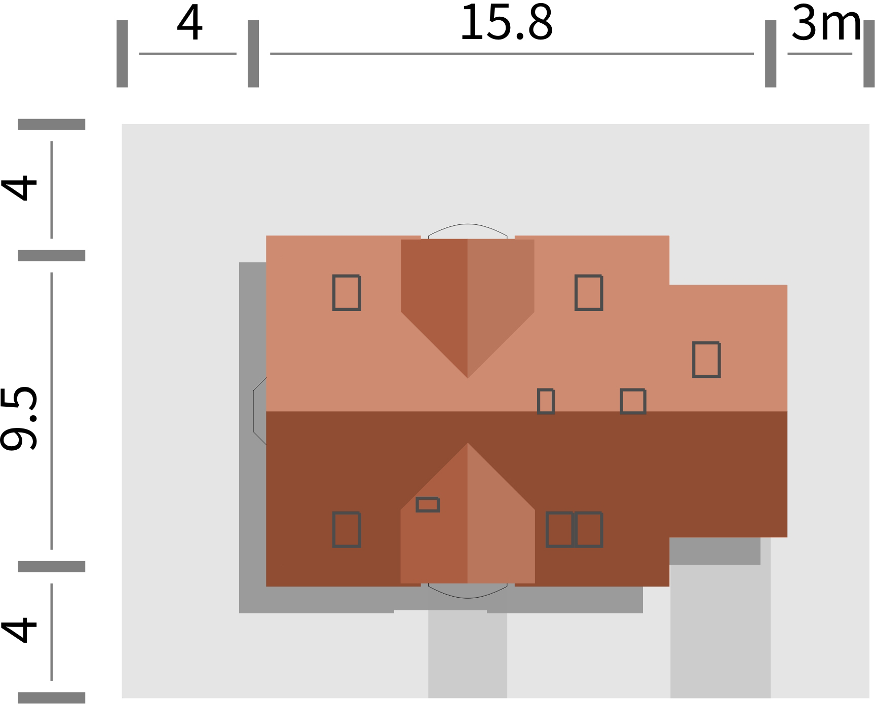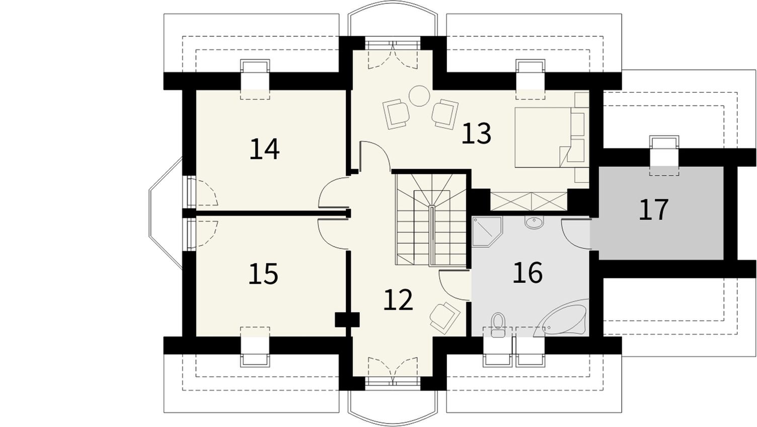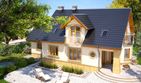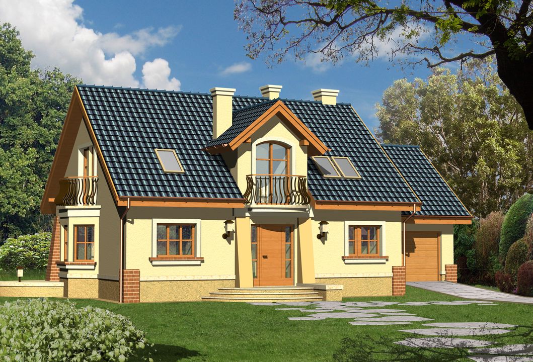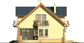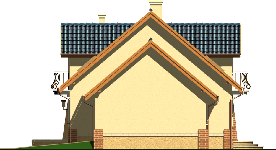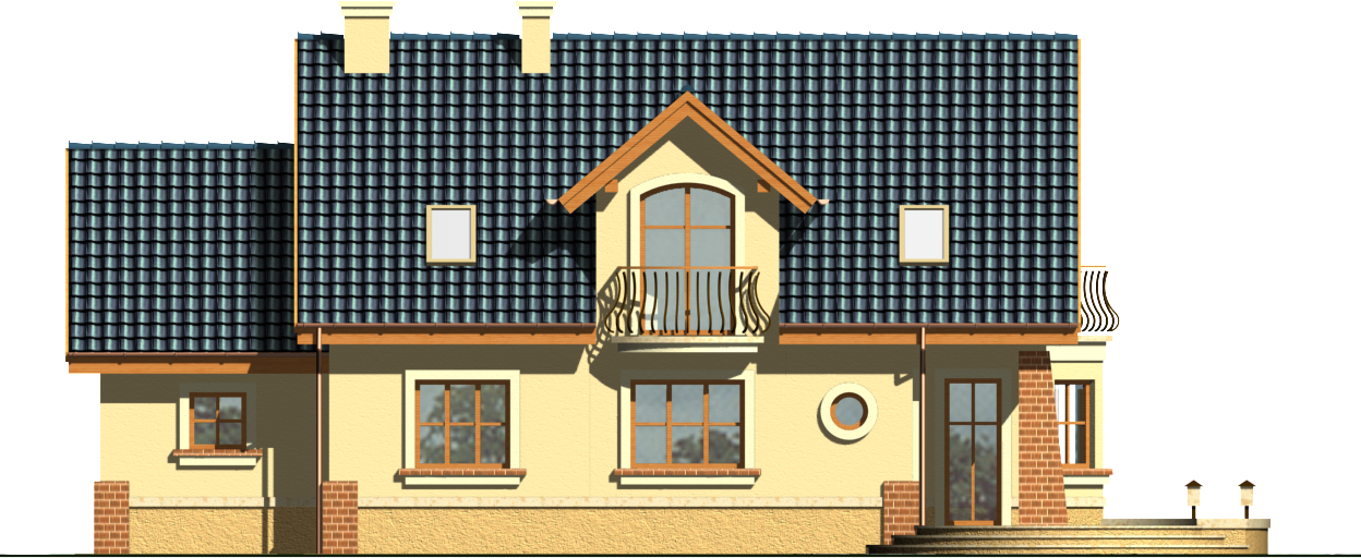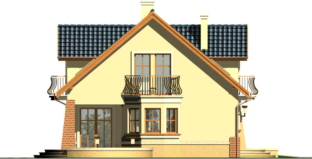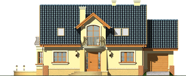 Graficzne opracowanie rzutów poglądowych widocznych na karcie projektu zostało wykonane przez Extradom.pl. Prezentowane przez Extradom.pl wizualizacje wykonane zostały przez autora projektu i należy poczytywać je jedynie za przykład i propozycję wykończenia, wizję architektoniczną autora projektu. Ostateczne wykończenie budynku może nastąpić na wiele sposobów. Szczegółowe rozwiązania zastosowane w oferowanej dokumentacji - w tym również ilość, lokalizacje i wygląd okien, drzwi, kominów - mogą w niewielkim stopniu różnić się od prezentowanej wizualizacji budynku.