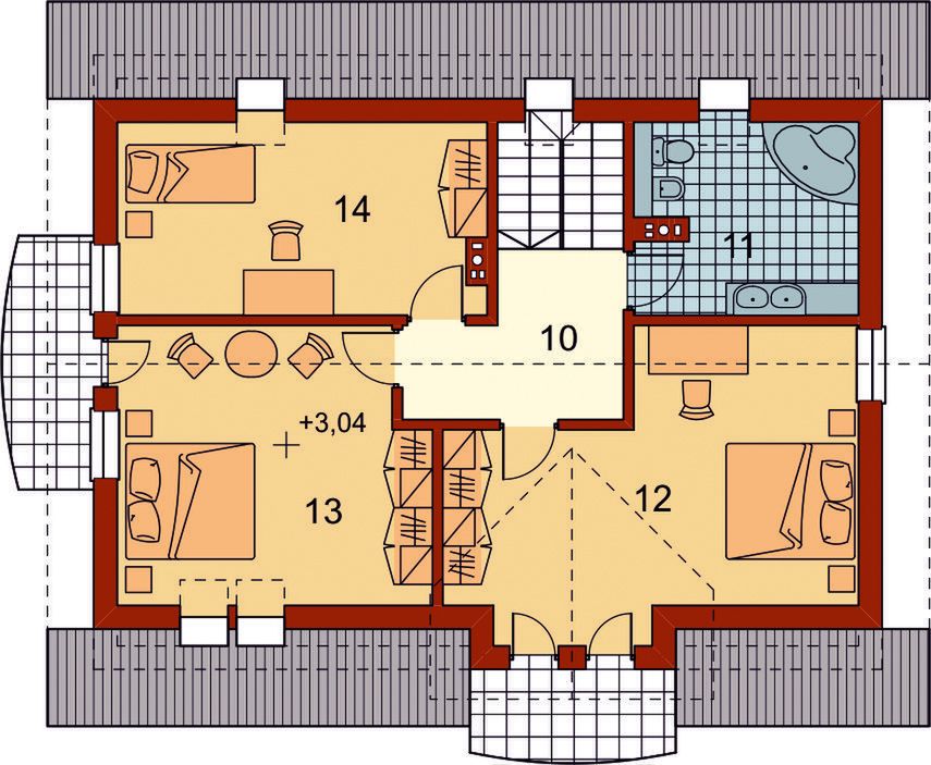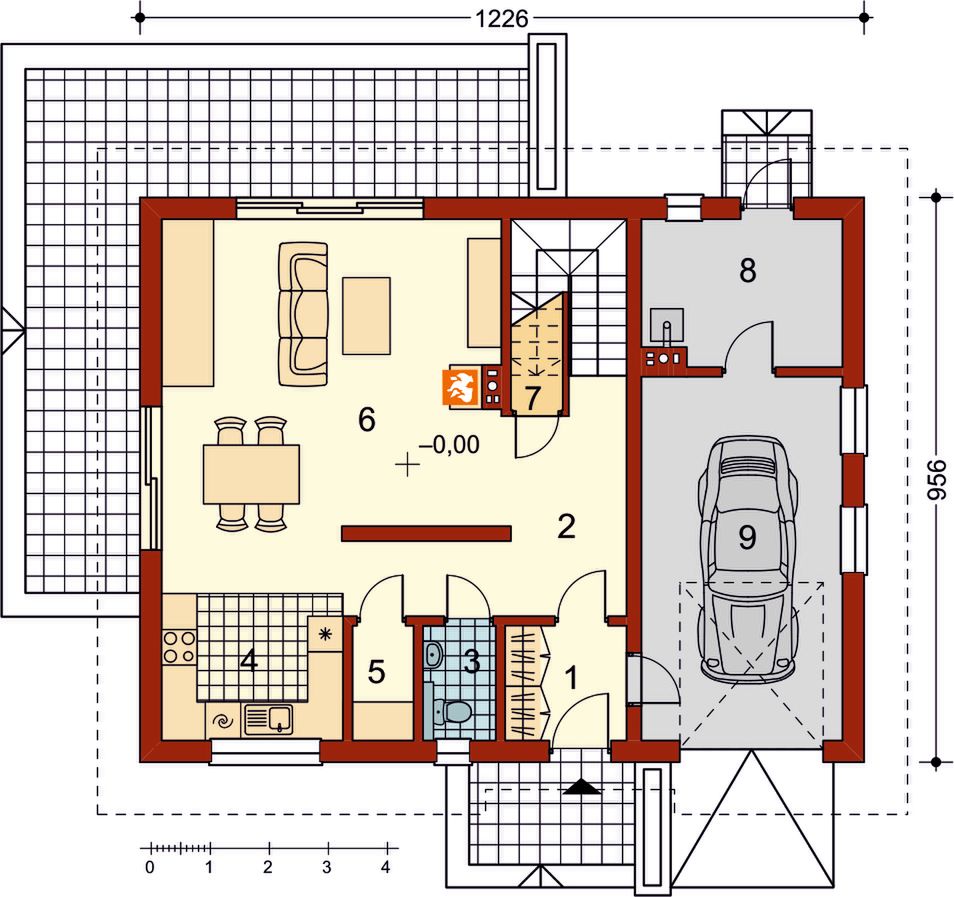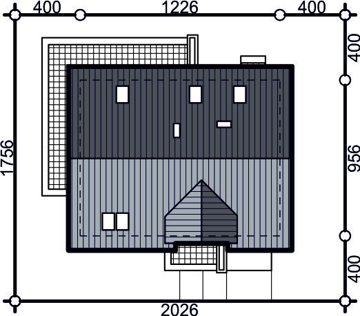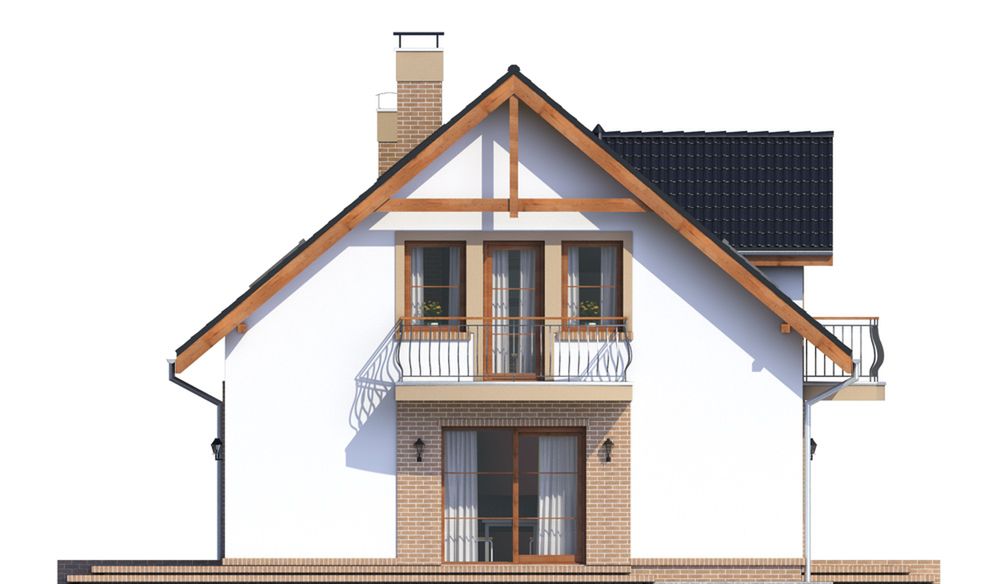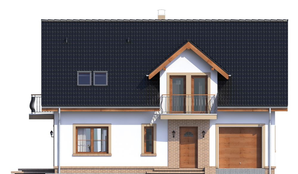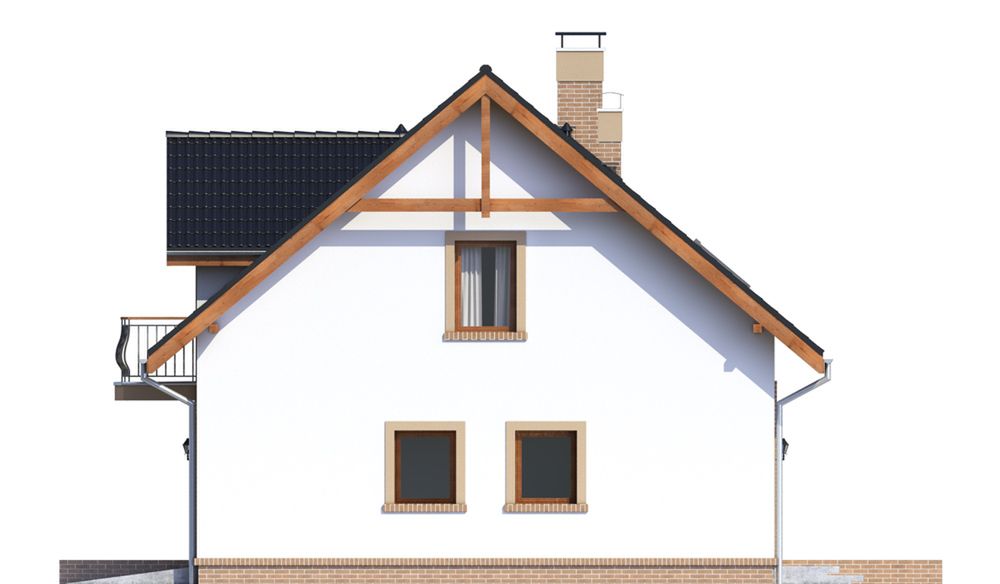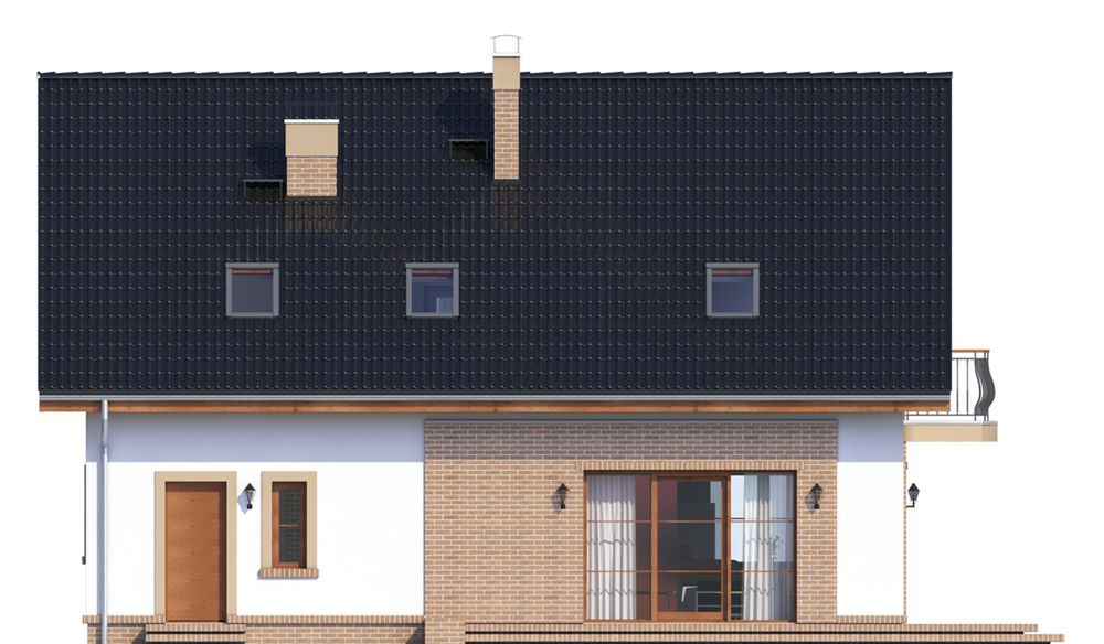Graficzne opracowanie rzutów poglądowych widocznych na karcie projektu zostało wykonane przez Extradom.pl. Prezentowane przez Extradom.pl wizualizacje wykonane zostały przez autora projektu i należy poczytywać je jedynie za przykład i propozycję wykończenia, wizję architektoniczną autora projektu. Ostateczne wykończenie budynku może nastąpić na wiele sposobów. Szczegółowe rozwiązania zastosowane w oferowanej dokumentacji - w tym również ilość, lokalizacje i wygląd okien, drzwi, kominów - mogą w niewielkim stopniu różnić się od prezentowanej wizualizacji budynku.