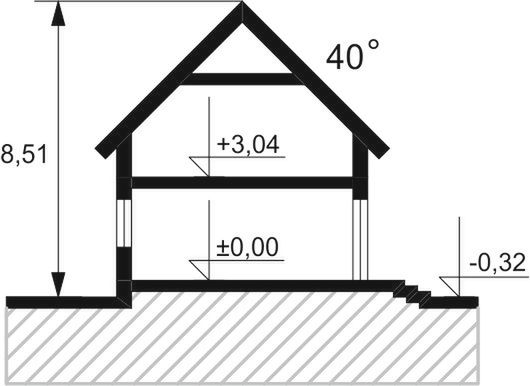 Posadowienie bezpośrednie na zbrojonych ławach i stopach fundamentowych wykonanych z betonu B 20. Ściany fundamentowe: murowane z bloczków betonowych M6. Ściany zewnętrzne: bloczki gazobetonowe gr. 25cm na zaprawie systemowej, ciepłochronnej, ocieplony styropianem fasadowym gr. 15cm. Do ocieplenia budynku zaprojektowano użycie styropianu grafitowego gr. 15 cm, o współczynniku „lambda” nie przekraczającym 0,035 W(mK) i „oporze cieplnym” nie mniejszym niż Rd – 4,0 m2k/W. Zastosowanie materiałów budowlanych (ocieplenie ścian, dachu, podłogi na gruncie, okien i drzwi zewnętrznych) użytych w projekcie odpowiada nowym wymaganiom obowiązującym od stycznia 2021 roku (WT2021). Ściany nośne wewnętrzne: bloczki gazobetonowe gr. 25cm na zaprawie cementowo-wapiennej lub systemowej. Ściany wewnętrzne działowe: bloczki gazobetonowe gr. 12cm. Strop gęstożebrowy z wypełnieniem pustakami betonowymi, zalewany wraz z wieńcami betonem B 20. Konstrukcja dachu: drewniana, drewno klasy C24, więźba dachowa krokwiowo-jętkowa. Budynek, w wersji podstawowej, jest zaprojektowany z pomieszczeniem kotłowni wyposażonej w kocioł ekologiczny na paliwo stałe „pellet” i spełnia wszystkie wymagania dotyczące WT2021. Na etapie adaptacji projektu jest możliwość zaprojektowania ogrzewania gazowego ze wspomaganiem instalacją solarną lub ogrzewania nowoczesną pompa ciepła typu powietrze – woda. Projekt pod względem konstrukcyjnym spełnia normy zgodne z Eurokodami.