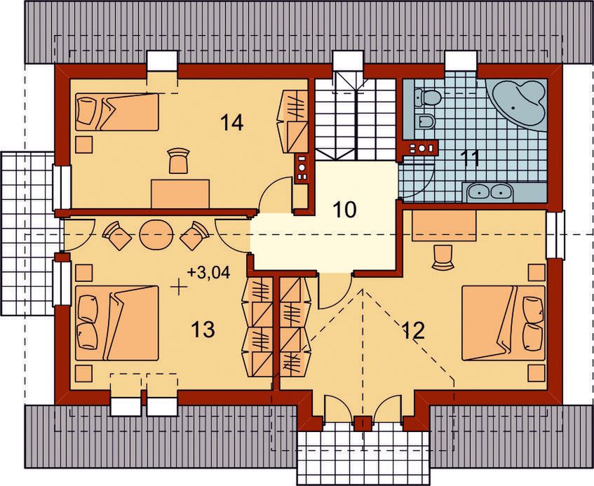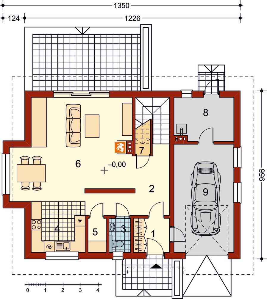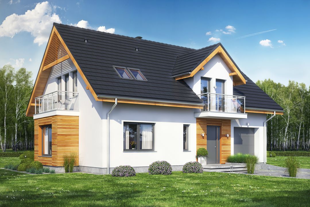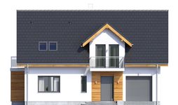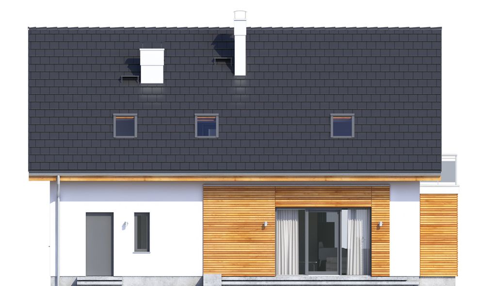Graficzne opracowanie rzutów poglądowych widocznych na karcie projektu zostało wykonane przez Extradom.pl. Prezentowane przez Extradom.pl wizualizacje wykonane zostały przez autora projektu i należy poczytywać je jedynie za przykład i propozycję wykończenia, wizję architektoniczną autora projektu. Ostateczne wykończenie budynku może nastąpić na wiele sposobów. Szczegółowe rozwiązania zastosowane w oferowanej dokumentacji - w tym również ilość, lokalizacje i wygląd okien, drzwi, kominów - mogą w niewielkim stopniu różnić się od prezentowanej wizualizacji budynku.