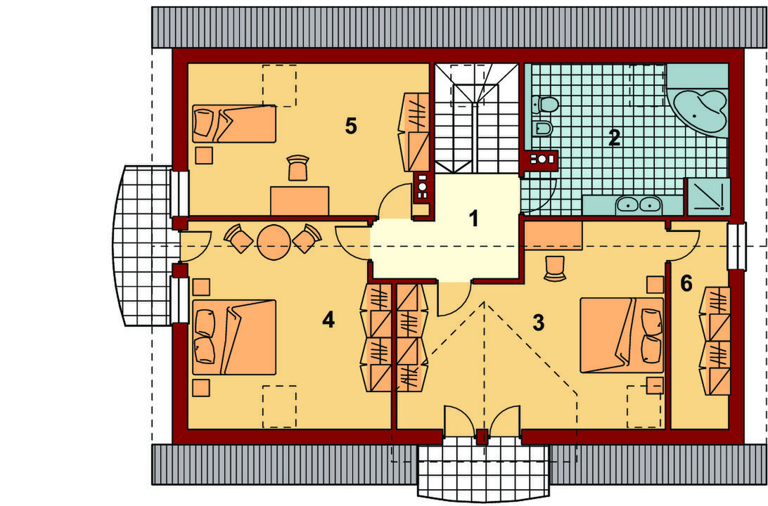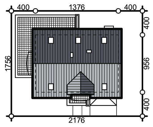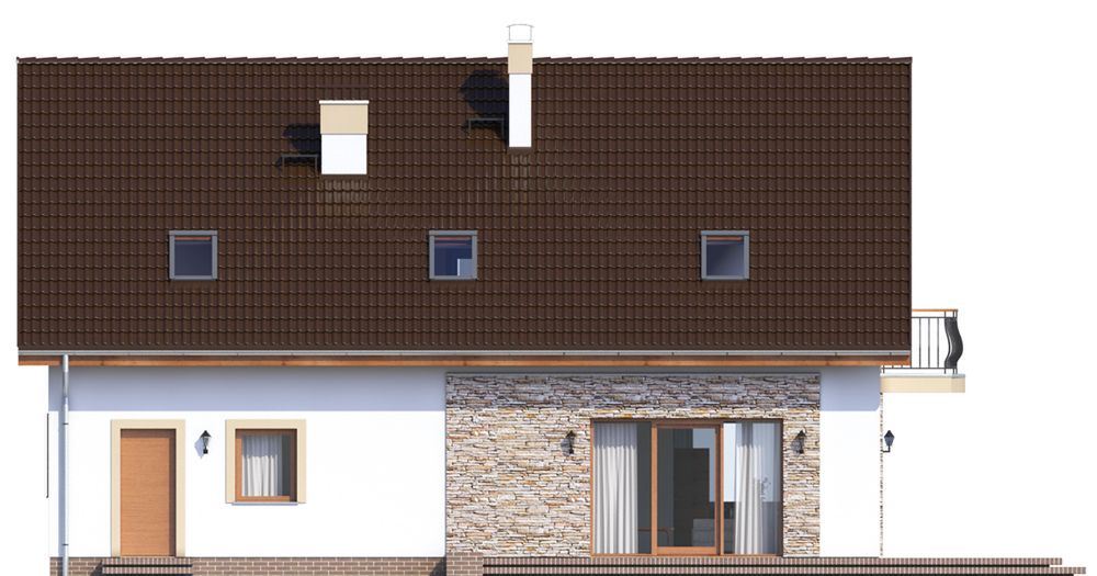 Graficzne opracowanie rzutów poglądowych widocznych na karcie projektu zostało wykonane przez Extradom.pl. Prezentowane przez Extradom.pl wizualizacje wykonane zostały przez autora projektu i należy poczytywać je jedynie za przykład i propozycję wykończenia, wizję architektoniczną autora projektu. Ostateczne wykończenie budynku może nastąpić na wiele sposobów. Szczegółowe rozwiązania zastosowane w oferowanej dokumentacji - w tym również ilość, lokalizacje i wygląd okien, drzwi, kominów - mogą w niewielkim stopniu różnić się od prezentowanej wizualizacji budynku.