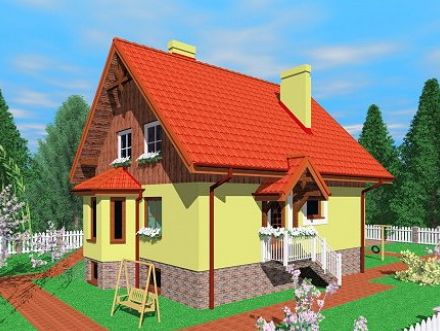 Graficzne opracowanie rzutów poglądowych widocznych na karcie projektu zostało wykonane przez Extradom.pl. Prezentowane przez Extradom.pl wizualizacje wykonane zostały przez autora projektu i należy poczytywać je jedynie za przykład i propozycję wykończenia, wizję architektoniczną autora projektu. Ostateczne wykończenie budynku może nastąpić na wiele sposobów. Szczegółowe rozwiązania zastosowane w oferowanej dokumentacji - w tym również ilość, lokalizacje i wygląd okien, drzwi, kominów - mogą w niewielkim stopniu różnić się od prezentowanej wizualizacji budynku.