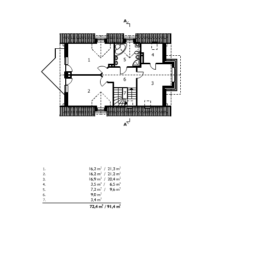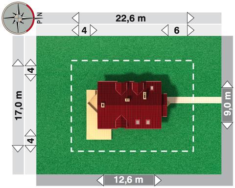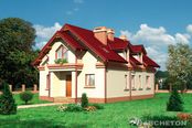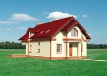 Graficzne opracowanie rzutów poglądowych widocznych na karcie projektu zostało wykonane przez Extradom.pl. Prezentowane przez Extradom.pl wizualizacje wykonane zostały przez autora projektu i należy poczytywać je jedynie za przykład i propozycję wykończenia, wizję architektoniczną autora projektu. Ostateczne wykończenie budynku może nastąpić na wiele sposobów. Szczegółowe rozwiązania zastosowane w oferowanej dokumentacji - w tym również ilość, lokalizacje i wygląd okien, drzwi, kominów - mogą w niewielkim stopniu różnić się od prezentowanej wizualizacji budynku.