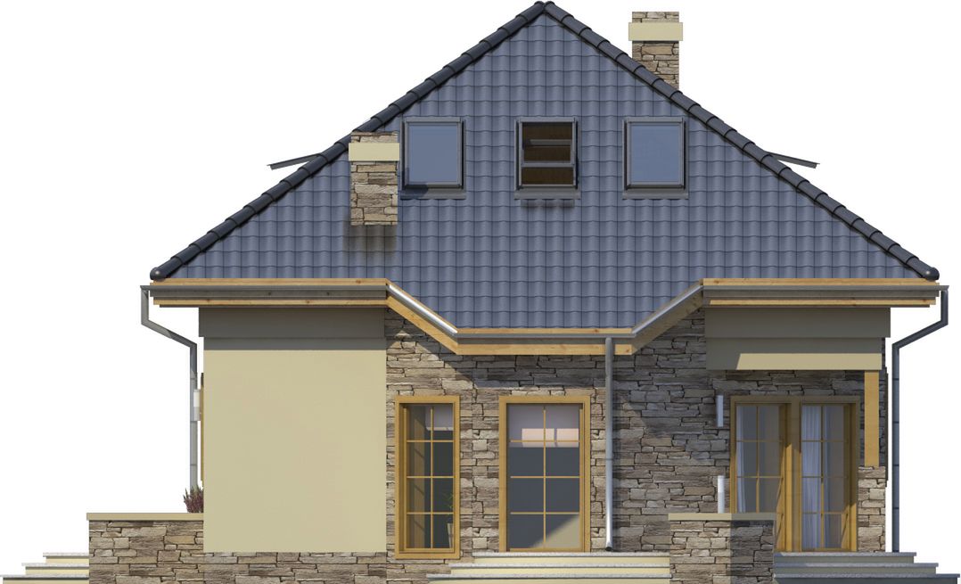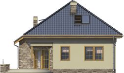 Graficzne opracowanie rzutów poglądowych widocznych na karcie projektu zostało wykonane przez Extradom.pl. Prezentowane przez Extradom.pl wizualizacje wykonane zostały przez autora projektu i należy poczytywać je jedynie za przykład i propozycję wykończenia, wizję architektoniczną autora projektu. Ostateczne wykończenie budynku może nastąpić na wiele sposobów. Szczegółowe rozwiązania zastosowane w oferowanej dokumentacji - w tym również ilość, lokalizacje i wygląd okien, drzwi, kominów - mogą w niewielkim stopniu różnić się od prezentowanej wizualizacji budynku.