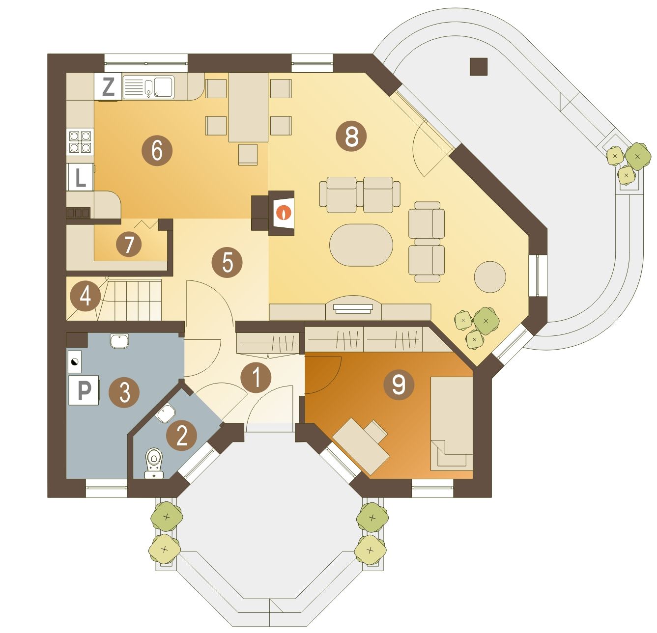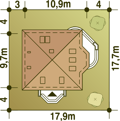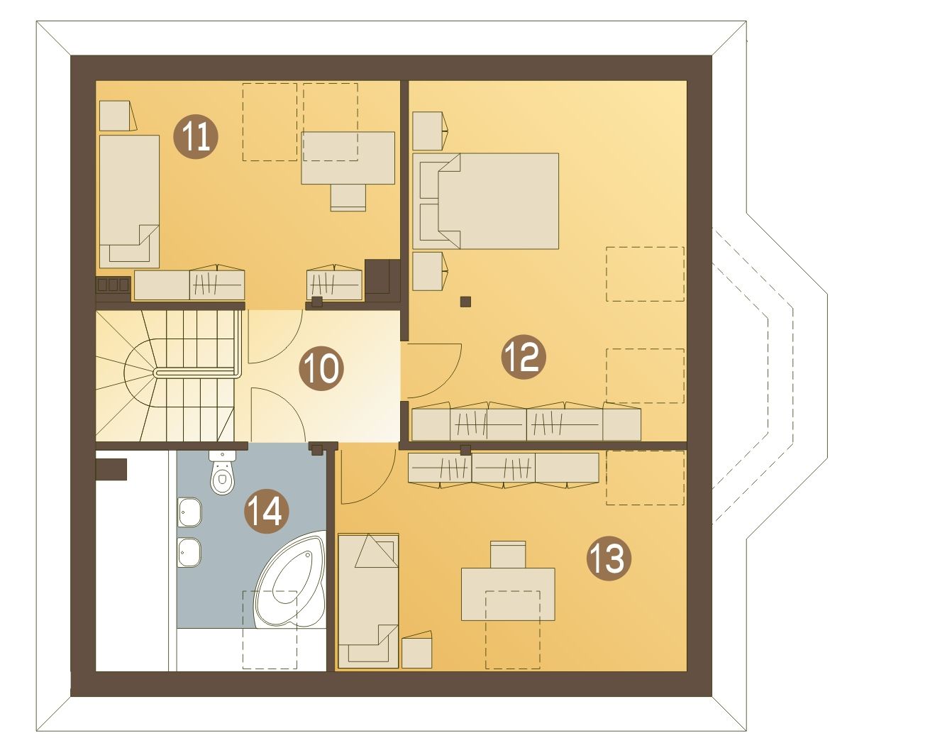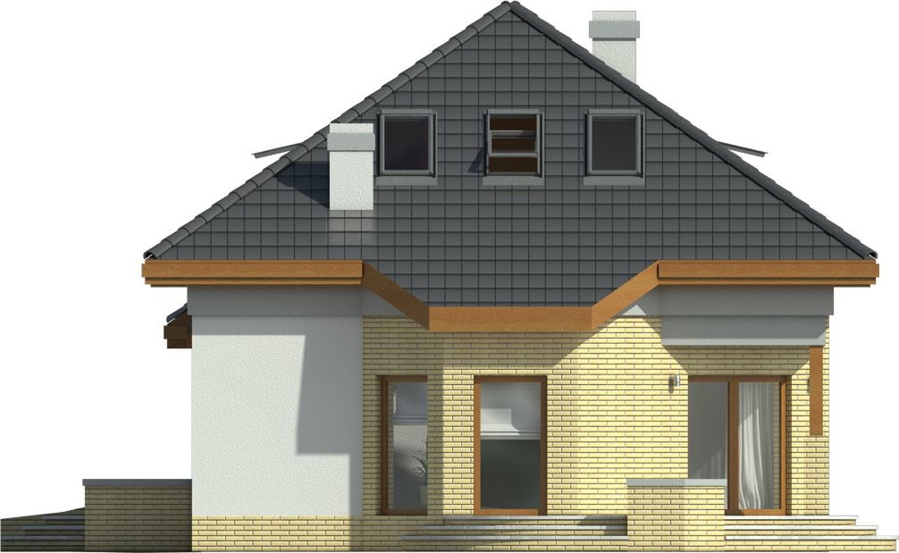 Graficzne opracowanie rzutów poglądowych widocznych na karcie projektu zostało wykonane przez Extradom.pl. Prezentowane przez Extradom.pl wizualizacje wykonane zostały przez autora projektu i należy poczytywać je jedynie za przykład i propozycję wykończenia, wizję architektoniczną autora projektu. Ostateczne wykończenie budynku może nastąpić na wiele sposobów. Szczegółowe rozwiązania zastosowane w oferowanej dokumentacji - w tym również ilość, lokalizacje i wygląd okien, drzwi, kominów - mogą w niewielkim stopniu różnić się od prezentowanej wizualizacji budynku.