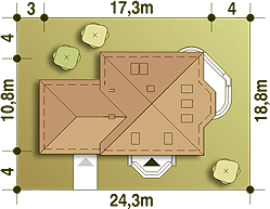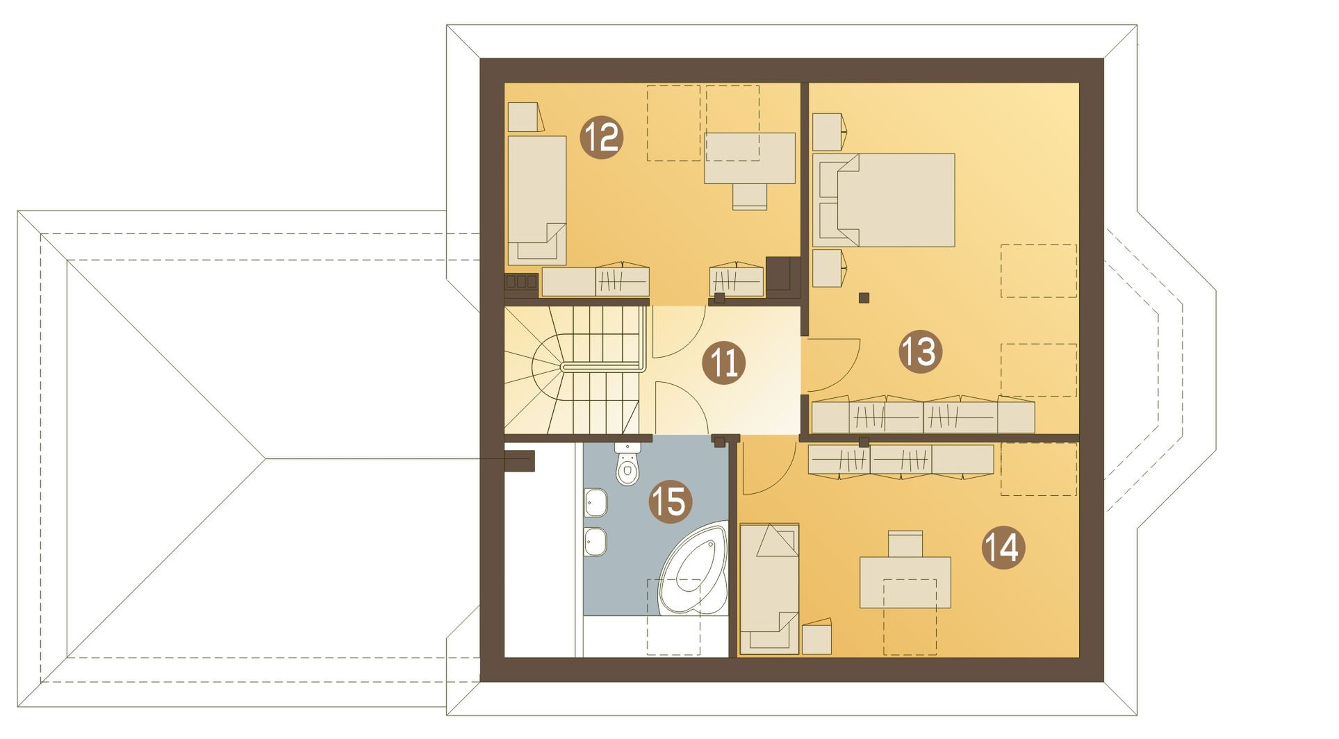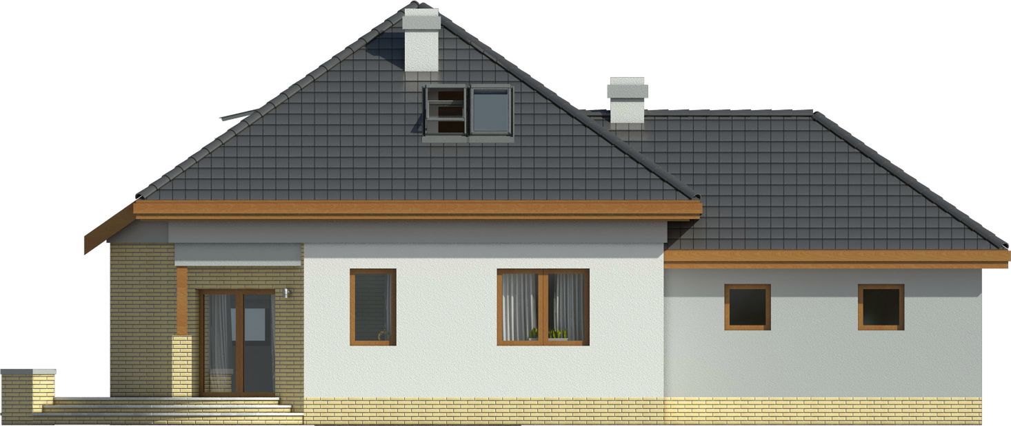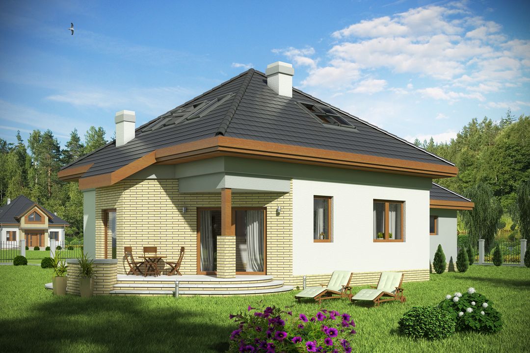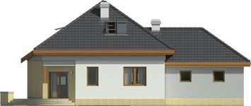 Graficzne opracowanie rzutów poglądowych widocznych na karcie projektu zostało wykonane przez Extradom.pl. Prezentowane przez Extradom.pl wizualizacje wykonane zostały przez autora projektu i należy poczytywać je jedynie za przykład i propozycję wykończenia, wizję architektoniczną autora projektu. Ostateczne wykończenie budynku może nastąpić na wiele sposobów. Szczegółowe rozwiązania zastosowane w oferowanej dokumentacji - w tym również ilość, lokalizacje i wygląd okien, drzwi, kominów - mogą w niewielkim stopniu różnić się od prezentowanej wizualizacji budynku.