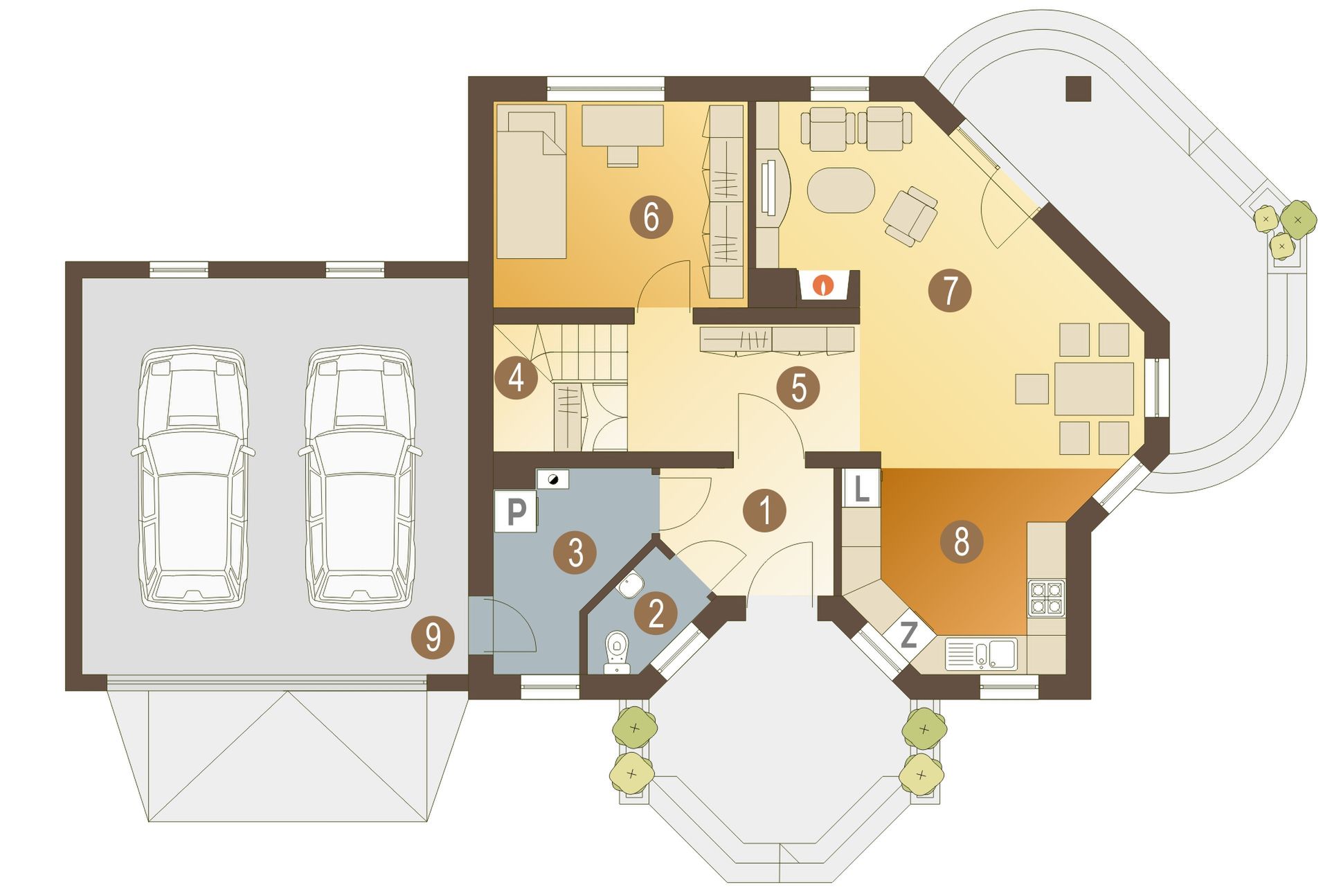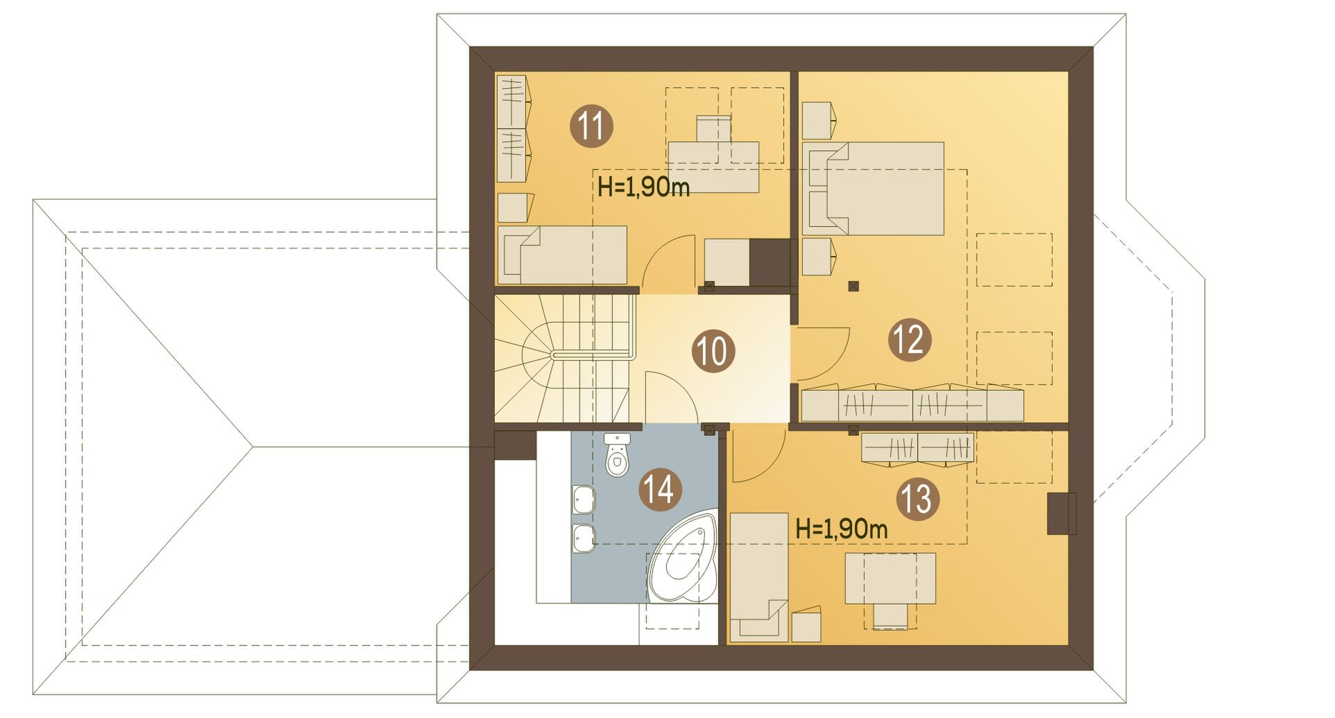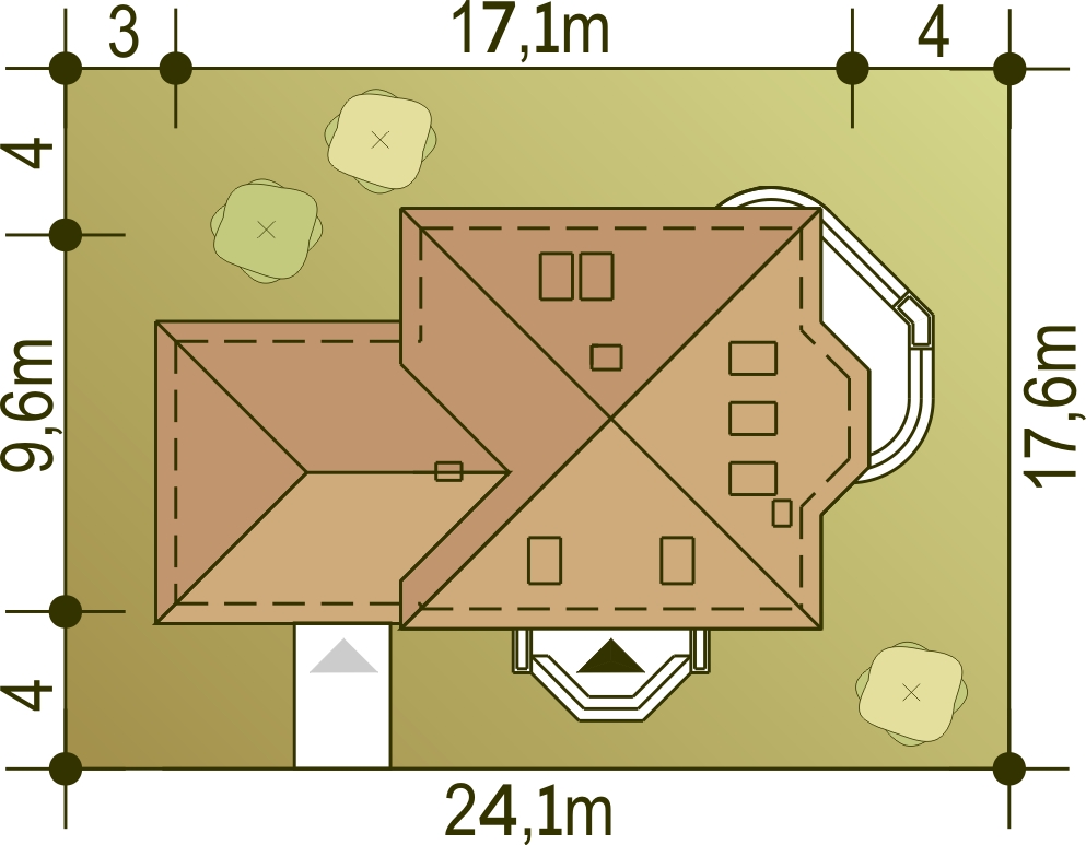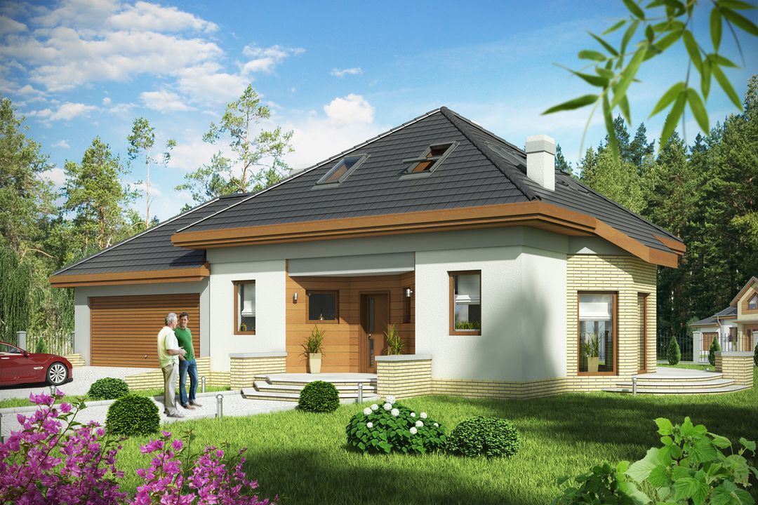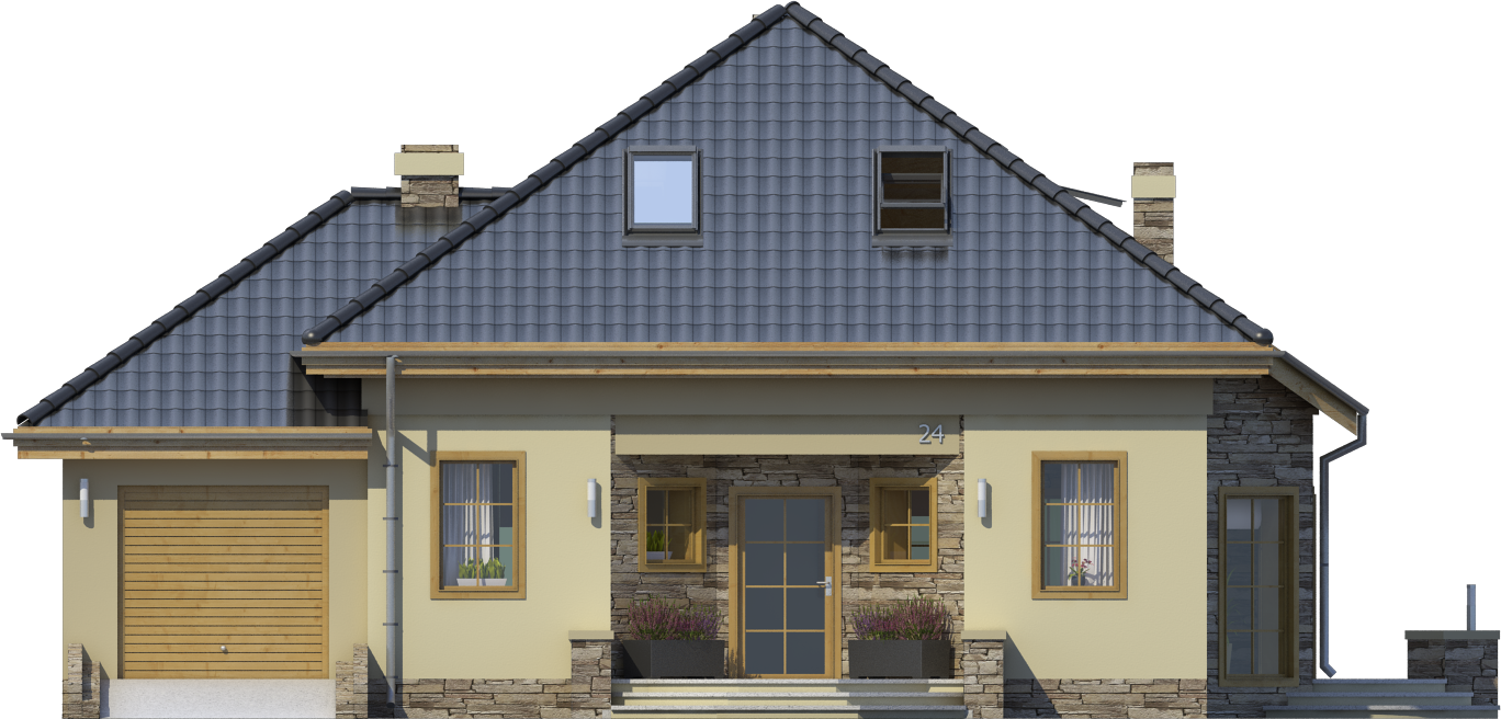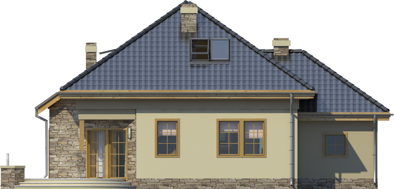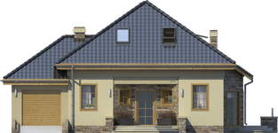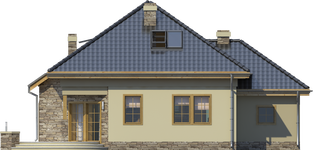 Graficzne opracowanie rzutów poglądowych widocznych na karcie projektu zostało wykonane przez Extradom.pl. Prezentowane przez Extradom.pl wizualizacje wykonane zostały przez autora projektu i należy poczytywać je jedynie za przykład i propozycję wykończenia, wizję architektoniczną autora projektu. Ostateczne wykończenie budynku może nastąpić na wiele sposobów. Szczegółowe rozwiązania zastosowane w oferowanej dokumentacji - w tym również ilość, lokalizacje i wygląd okien, drzwi, kominów - mogą w niewielkim stopniu różnić się od prezentowanej wizualizacji budynku.