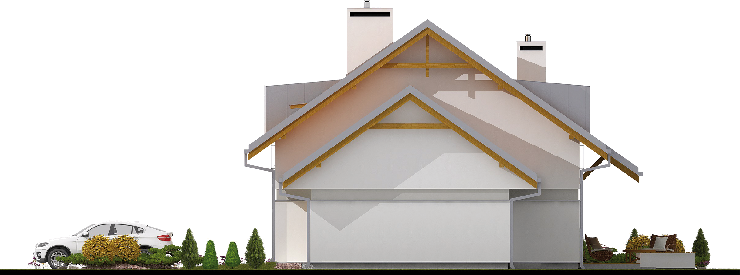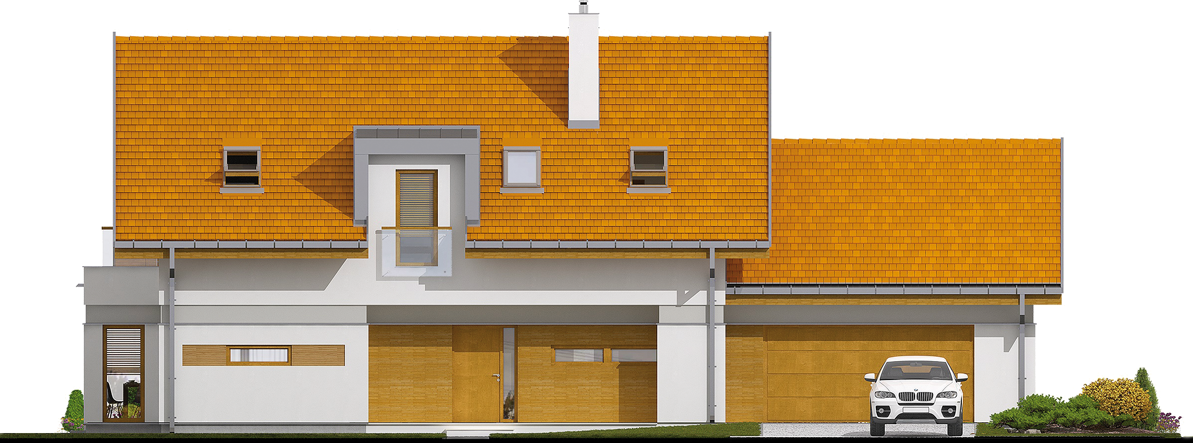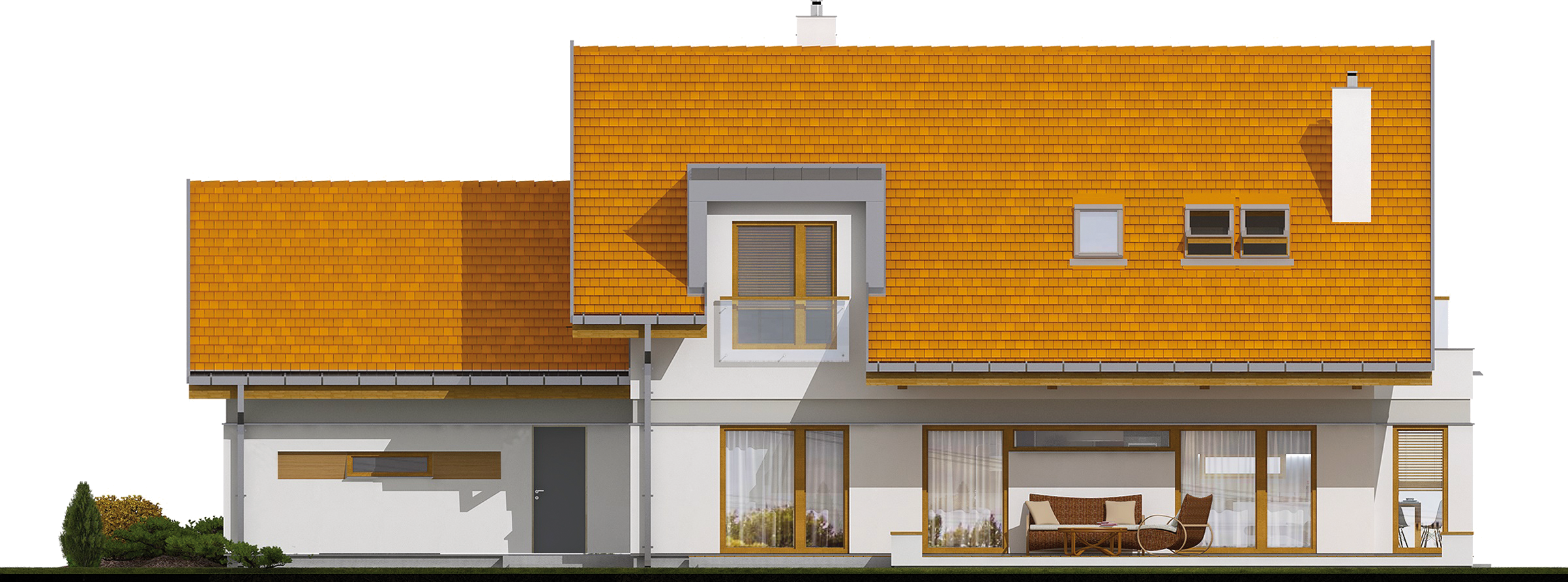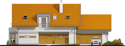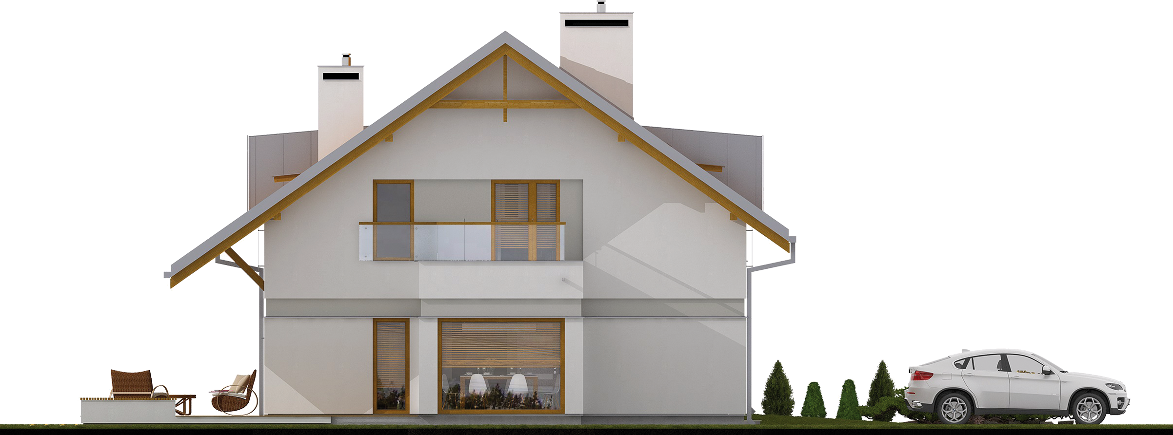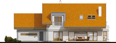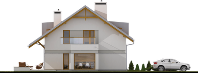 Graficzne opracowanie rzutów poglądowych widocznych na karcie projektu zostało wykonane przez Extradom.pl. Prezentowane przez Extradom.pl wizualizacje wykonane zostały przez autora projektu i należy poczytywać je jedynie za przykład i propozycję wykończenia, wizję architektoniczną autora projektu. Ostateczne wykończenie budynku może nastąpić na wiele sposobów. Szczegółowe rozwiązania zastosowane w oferowanej dokumentacji - w tym również ilość, lokalizacje i wygląd okien, drzwi, kominów - mogą w niewielkim stopniu różnić się od prezentowanej wizualizacji budynku.