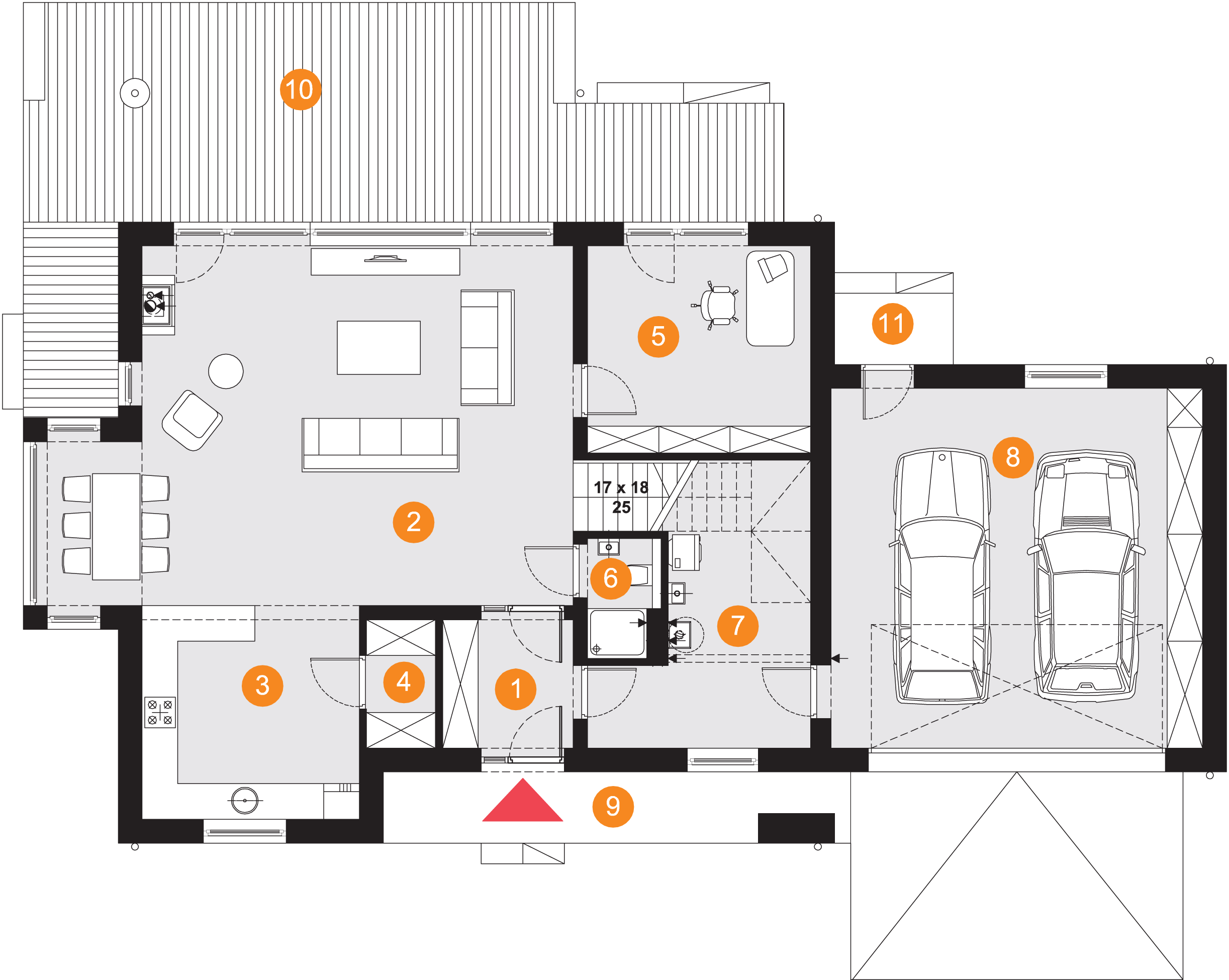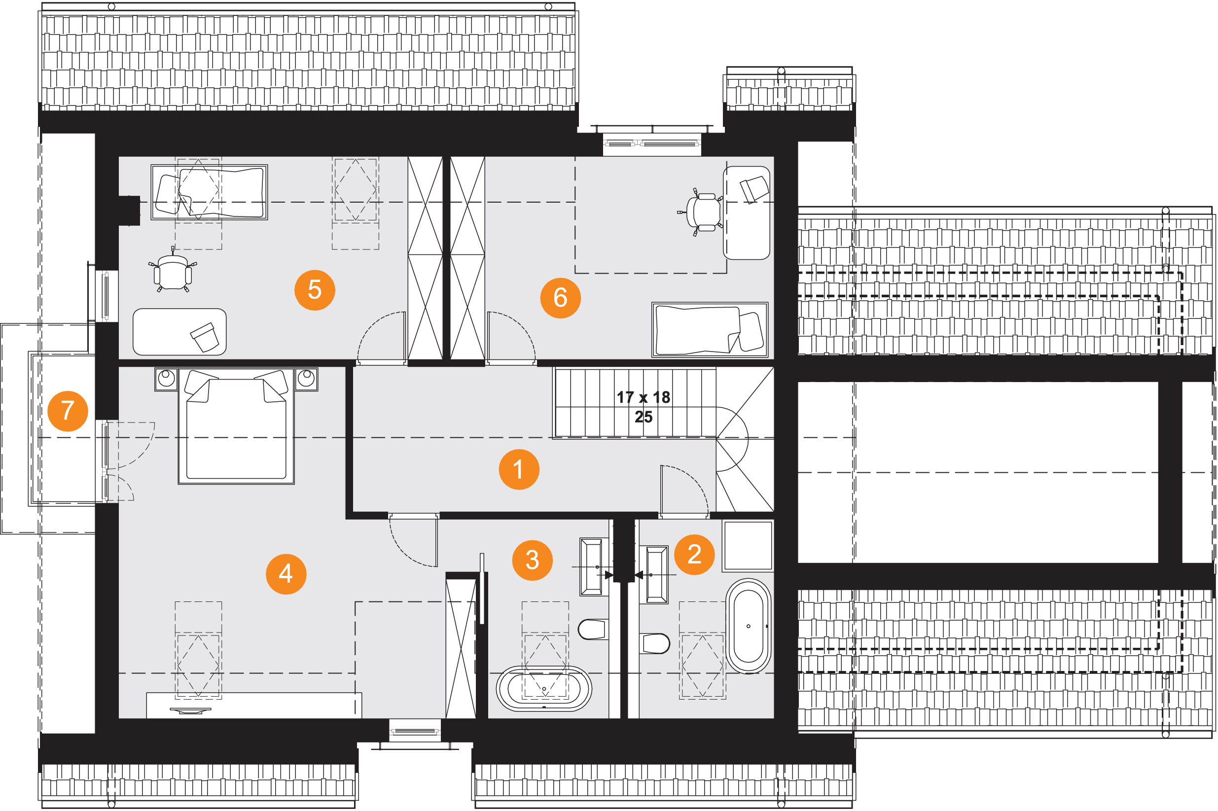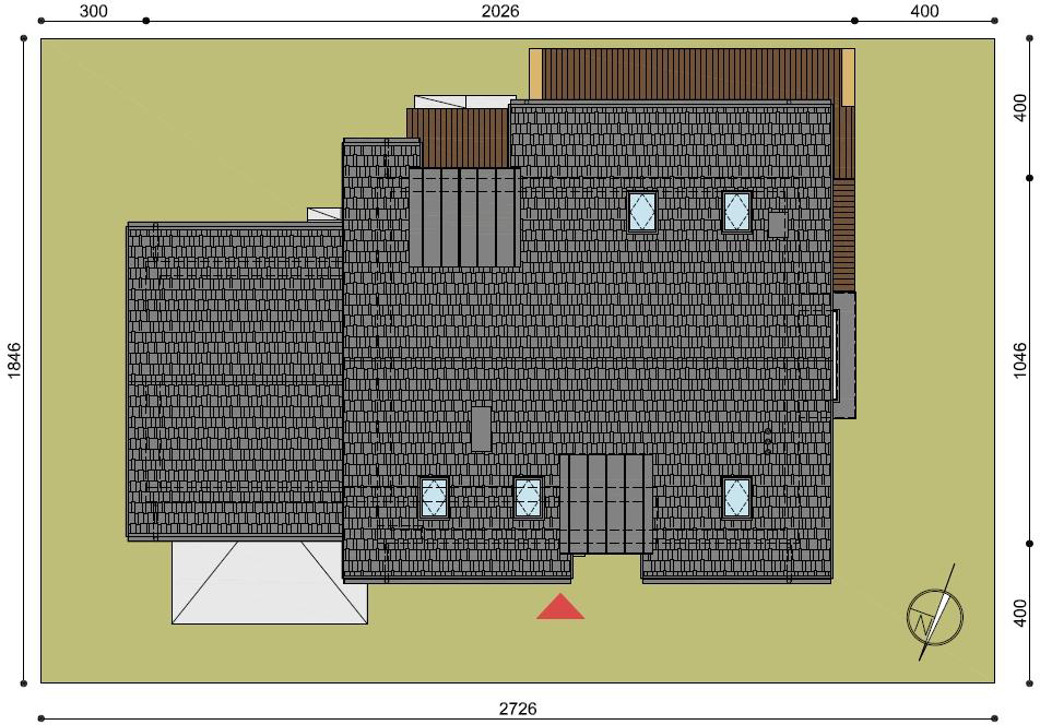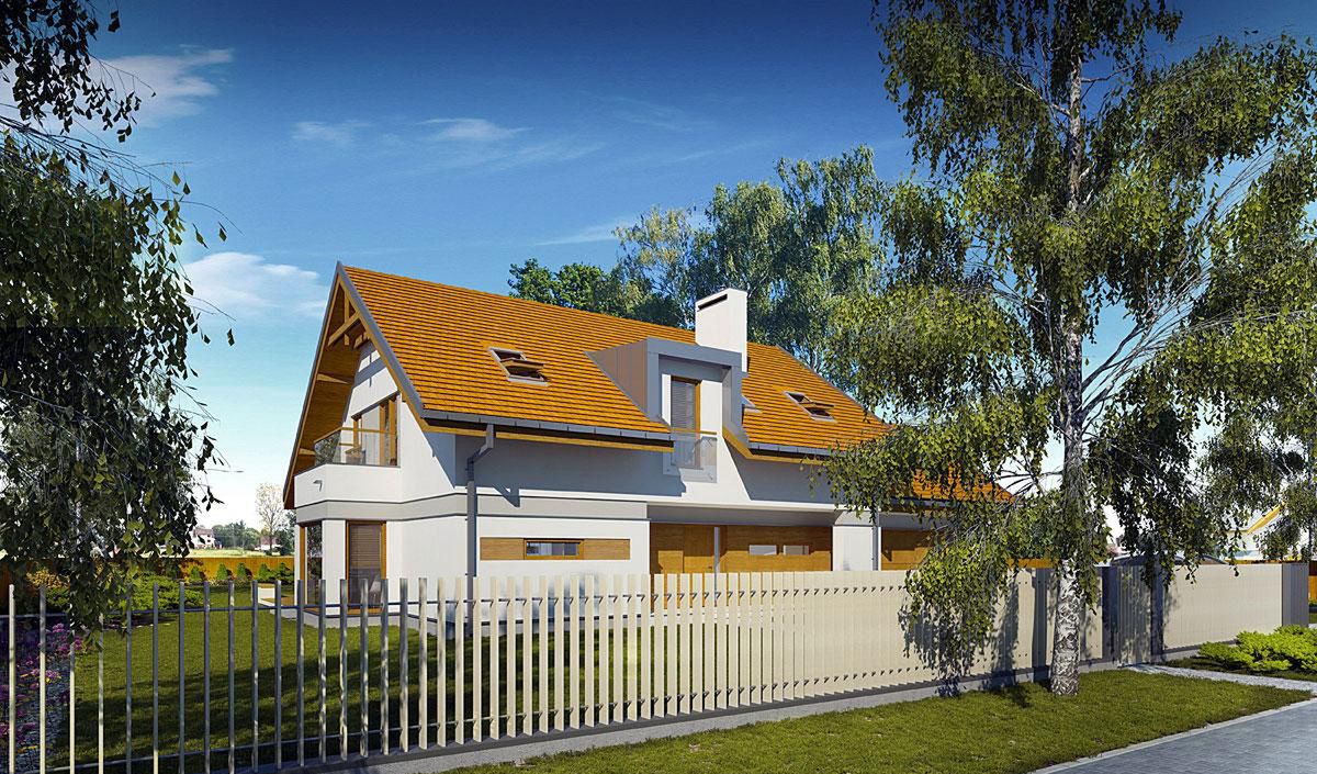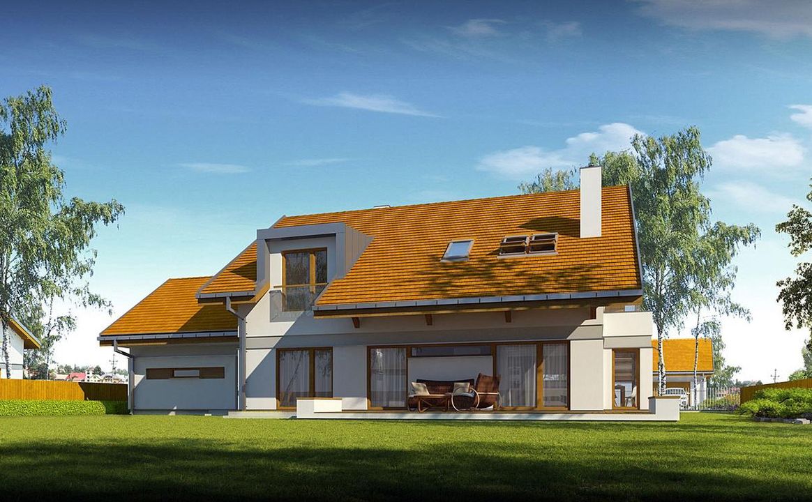 Graficzne opracowanie rzutów poglądowych widocznych na karcie projektu zostało wykonane przez Extradom.pl. Prezentowane przez Extradom.pl wizualizacje wykonane zostały przez autora projektu i należy poczytywać je jedynie za przykład i propozycję wykończenia, wizję architektoniczną autora projektu. Ostateczne wykończenie budynku może nastąpić na wiele sposobów. Szczegółowe rozwiązania zastosowane w oferowanej dokumentacji - w tym również ilość, lokalizacje i wygląd okien, drzwi, kominów - mogą w niewielkim stopniu różnić się od prezentowanej wizualizacji budynku.