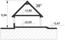 Ściany: 2-warstwowe - YTONG 24 cm + styropian. Stropy: belki drewniane. Dach: blachodachówka, kąt nachylenia 38°. Ogrzewanie: gazowe, olejowe.