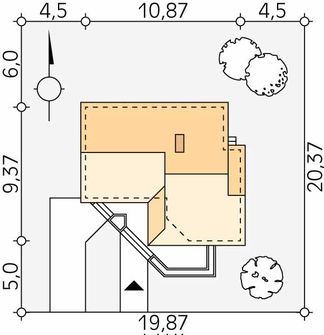 Graficzne opracowanie rzutów poglądowych widocznych na karcie projektu zostało wykonane przez Extradom.pl. Prezentowane przez Extradom.pl wizualizacje wykonane zostały przez autora projektu i należy poczytywać je jedynie za przykład i propozycję wykończenia, wizję architektoniczną autora projektu. Ostateczne wykończenie budynku może nastąpić na wiele sposobów. Szczegółowe rozwiązania zastosowane w oferowanej dokumentacji - w tym również ilość, lokalizacje i wygląd okien, drzwi, kominów - mogą w niewielkim stopniu różnić się od prezentowanej wizualizacji budynku.