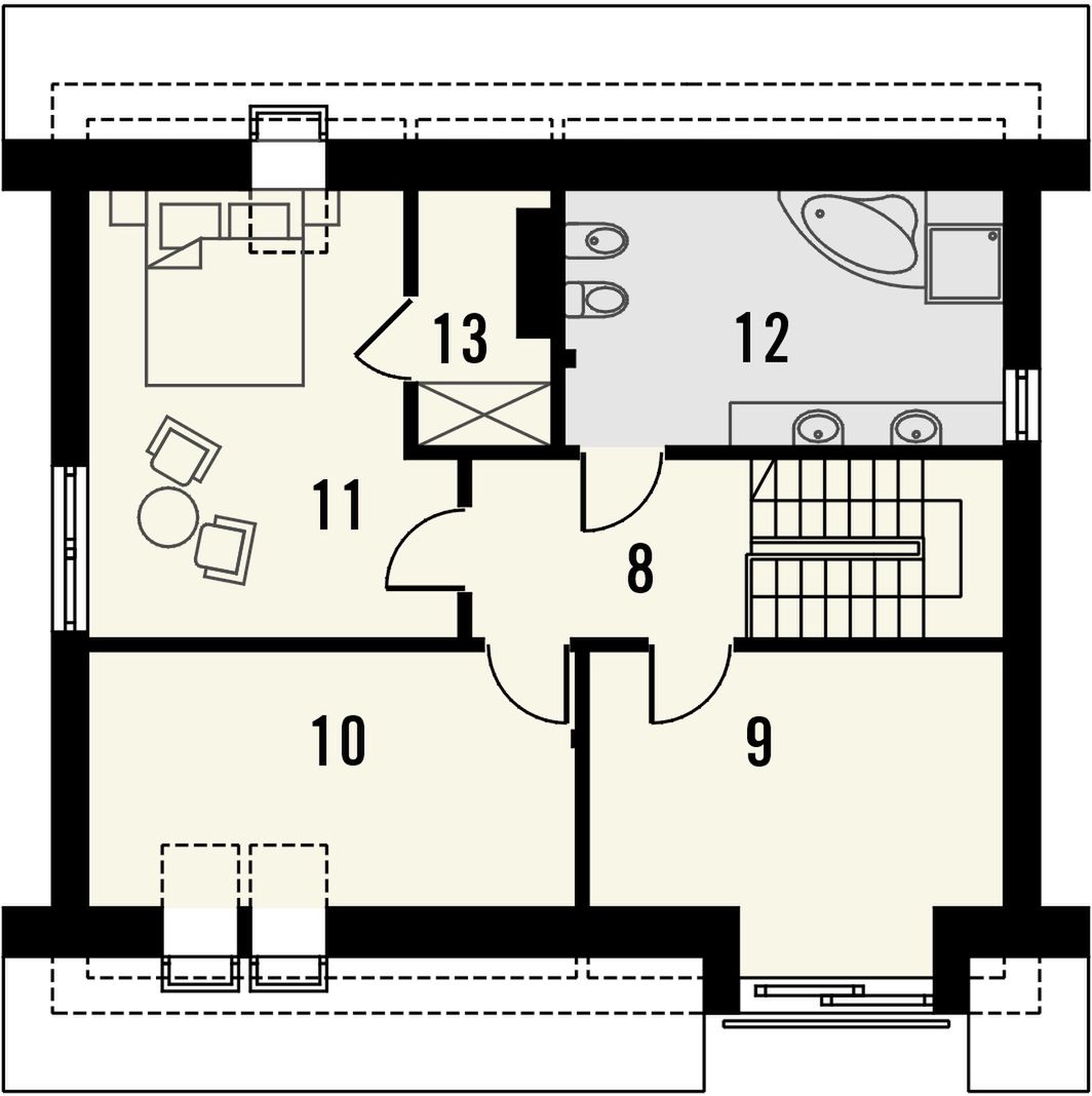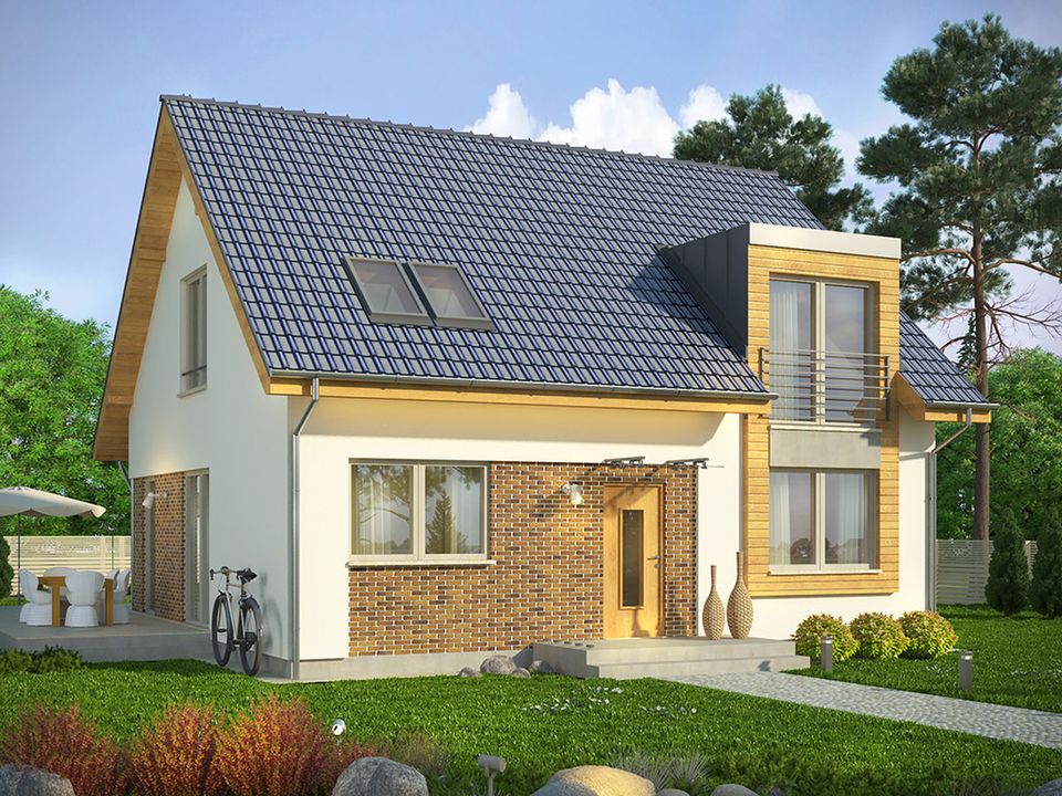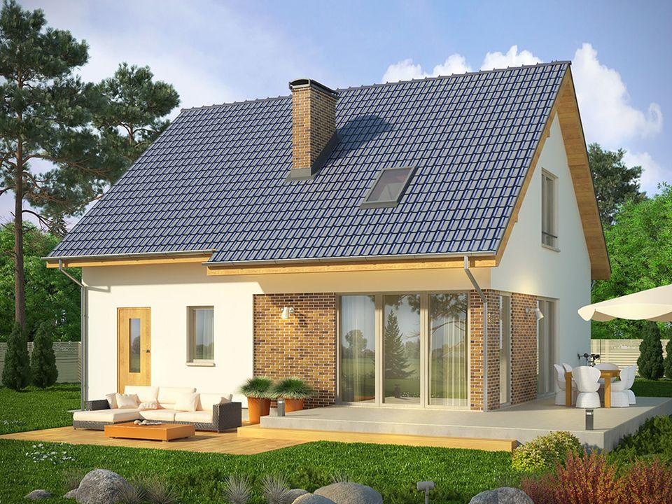 Graficzne opracowanie rzutów poglądowych widocznych na karcie projektu zostało wykonane przez Extradom.pl. Prezentowane przez Extradom.pl wizualizacje wykonane zostały przez autora projektu i należy poczytywać je jedynie za przykład i propozycję wykończenia, wizję architektoniczną autora projektu. Ostateczne wykończenie budynku może nastąpić na wiele sposobów. Szczegółowe rozwiązania zastosowane w oferowanej dokumentacji - w tym również ilość, lokalizacje i wygląd okien, drzwi, kominów - mogą w niewielkim stopniu różnić się od prezentowanej wizualizacji budynku.