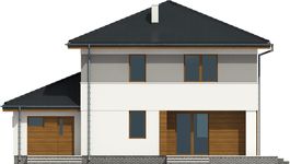 Graficzne opracowanie rzutów poglądowych widocznych na karcie projektu zostało wykonane przez Extradom.pl. Prezentowane przez Extradom.pl wizualizacje wykonane zostały przez autora projektu i należy poczytywać je jedynie za przykład i propozycję wykończenia, wizję architektoniczną autora projektu. Ostateczne wykończenie budynku może nastąpić na wiele sposobów. Szczegółowe rozwiązania zastosowane w oferowanej dokumentacji - w tym również ilość, lokalizacje i wygląd okien, drzwi, kominów - mogą w niewielkim stopniu różnić się od prezentowanej wizualizacji budynku.