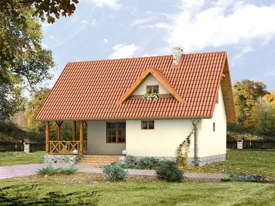 Graficzne opracowanie rzutów poglądowych widocznych na karcie projektu zostało wykonane przez Extradom.pl. Prezentowane przez Extradom.pl wizualizacje wykonane zostały przez autora projektu i należy poczytywać je jedynie za przykład i propozycję wykończenia, wizję architektoniczną autora projektu. Ostateczne wykończenie budynku może nastąpić na wiele sposobów. Szczegółowe rozwiązania zastosowane w oferowanej dokumentacji - w tym również ilość, lokalizacje i wygląd okien, drzwi, kominów - mogą w niewielkim stopniu różnić się od prezentowanej wizualizacji budynku.