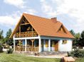 Graficzne opracowanie rzutów poglądowych widocznych na karcie projektu zostało wykonane przez Extradom.pl. Prezentowane przez Extradom.pl wizualizacje wykonane zostały przez autora projektu i należy poczytywać je jedynie za przykład i propozycję wykończenia, wizję architektoniczną autora projektu. Ostateczne wykończenie budynku może nastąpić na wiele sposobów. Szczegółowe rozwiązania zastosowane w oferowanej dokumentacji - w tym również ilość, lokalizacje i wygląd okien, drzwi, kominów - mogą w niewielkim stopniu różnić się od prezentowanej wizualizacji budynku.