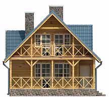 Ściany: szkielet drewniany. Stropy: na belkach drewnianych. Dach: dachówka bitumiczna, kąt nachylenia 45°. Ogrzewanie: gazowe.