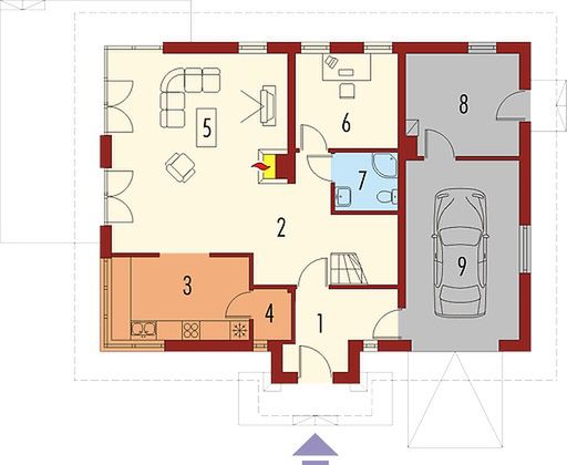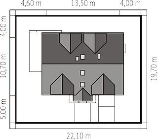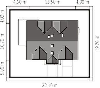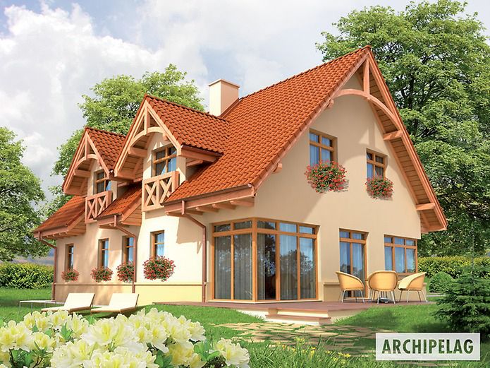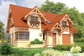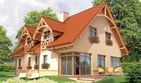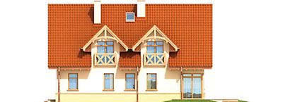 Graficzne opracowanie rzutów poglądowych widocznych na karcie projektu zostało wykonane przez Extradom.pl. Prezentowane przez Extradom.pl wizualizacje wykonane zostały przez autora projektu i należy poczytywać je jedynie za przykład i propozycję wykończenia, wizję architektoniczną autora projektu. Ostateczne wykończenie budynku może nastąpić na wiele sposobów. Szczegółowe rozwiązania zastosowane w oferowanej dokumentacji - w tym również ilość, lokalizacje i wygląd okien, drzwi, kominów - mogą w niewielkim stopniu różnić się od prezentowanej wizualizacji budynku.