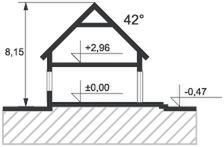 Ściany: 2-warstwowe - bloczek silikatowy + styropian. Stropy: żelbetowe, wylewane. Dach: dachówka ceramiczna CREATON, kąt nachylenia 42°. Ogrzewanie: na paliwo stałe.