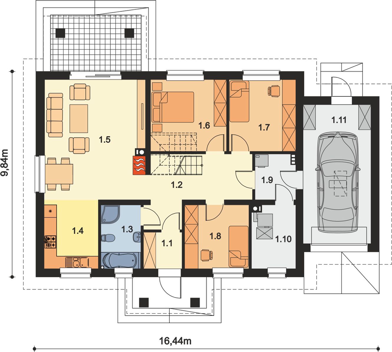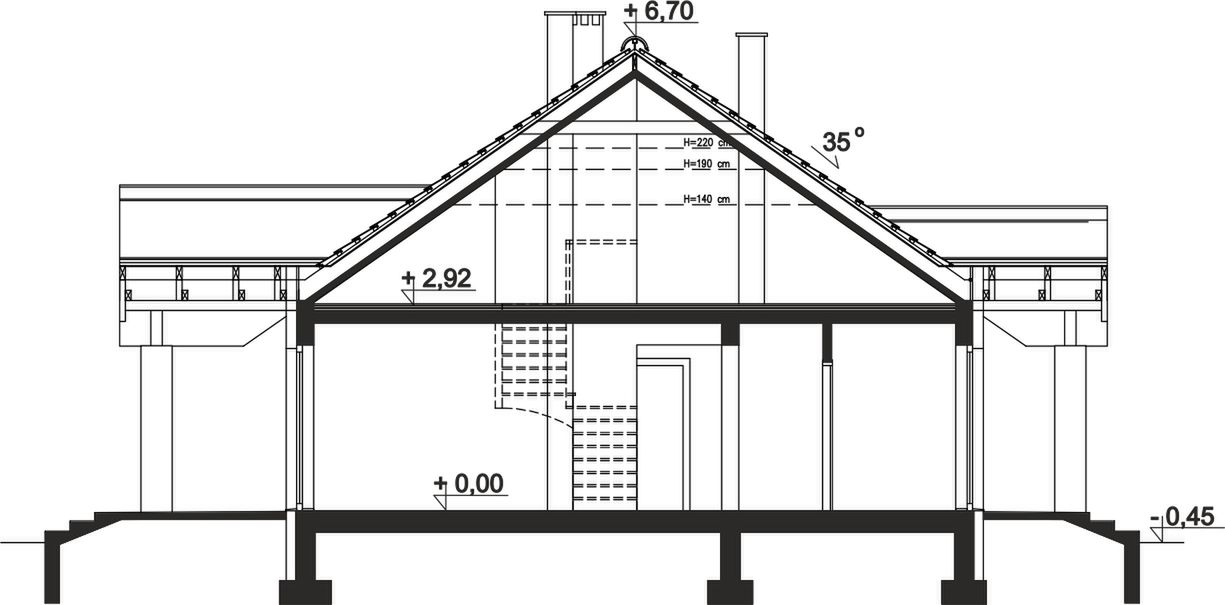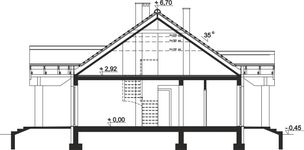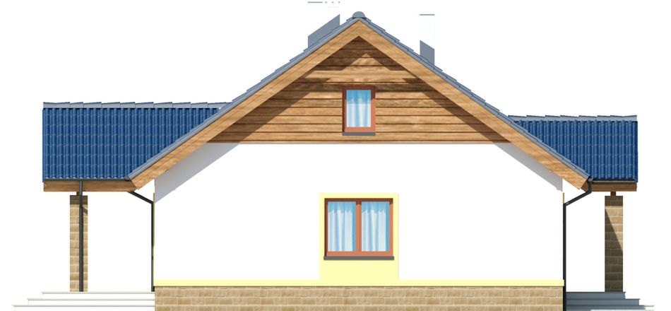 Graficzne opracowanie rzutów poglądowych widocznych na karcie projektu zostało wykonane przez Extradom.pl. Prezentowane przez Extradom.pl wizualizacje wykonane zostały przez autora projektu i należy poczytywać je jedynie za przykład i propozycję wykończenia, wizję architektoniczną autora projektu. Ostateczne wykończenie budynku może nastąpić na wiele sposobów. Szczegółowe rozwiązania zastosowane w oferowanej dokumentacji - w tym również ilość, lokalizacje i wygląd okien, drzwi, kominów - mogą w niewielkim stopniu różnić się od prezentowanej wizualizacji budynku.