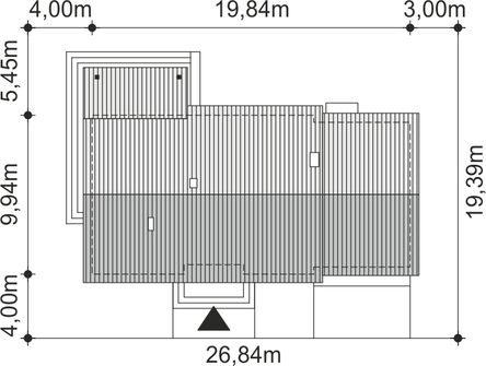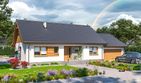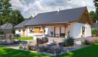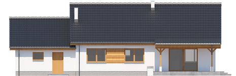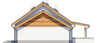 Graficzne opracowanie rzutów poglądowych widocznych na karcie projektu zostało wykonane przez Extradom.pl. Prezentowane przez Extradom.pl wizualizacje wykonane zostały przez autora projektu i należy poczytywać je jedynie za przykład i propozycję wykończenia, wizję architektoniczną autora projektu. Ostateczne wykończenie budynku może nastąpić na wiele sposobów. Szczegółowe rozwiązania zastosowane w oferowanej dokumentacji - w tym również ilość, lokalizacje i wygląd okien, drzwi, kominów - mogą w niewielkim stopniu różnić się od prezentowanej wizualizacji budynku.