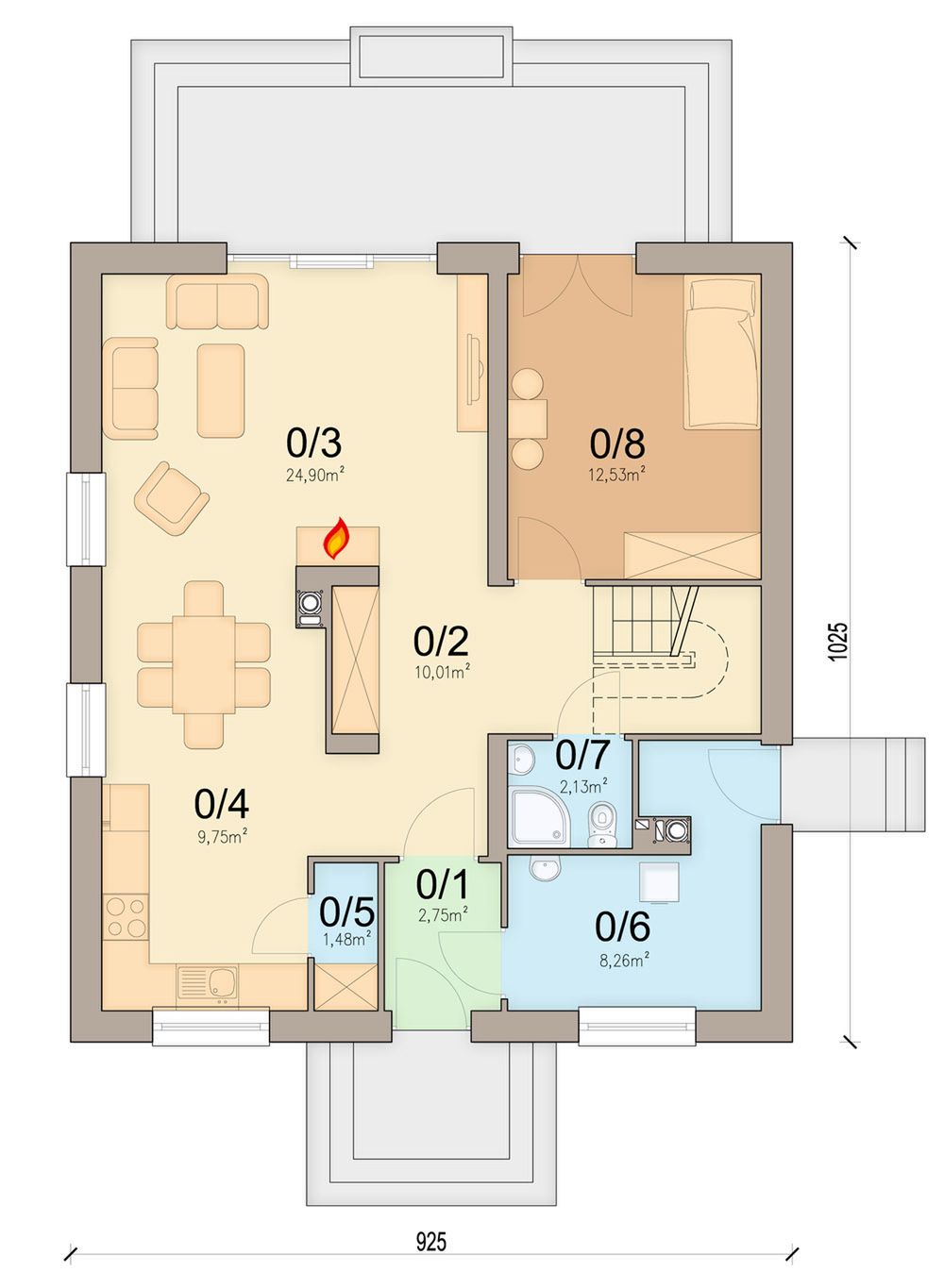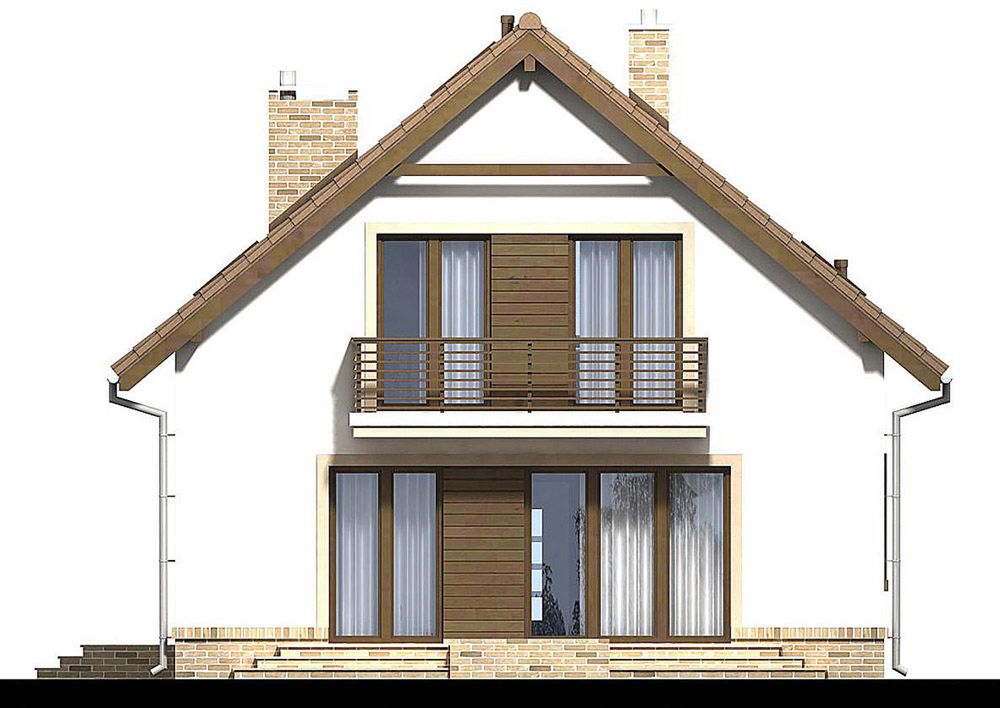 Graficzne opracowanie rzutów poglądowych widocznych na karcie projektu zostało wykonane przez Extradom.pl. Prezentowane przez Extradom.pl wizualizacje wykonane zostały przez autora projektu i należy poczytywać je jedynie za przykład i propozycję wykończenia, wizję architektoniczną autora projektu. Ostateczne wykończenie budynku może nastąpić na wiele sposobów. Szczegółowe rozwiązania zastosowane w oferowanej dokumentacji - w tym również ilość, lokalizacje i wygląd okien, drzwi, kominów - mogą w niewielkim stopniu różnić się od prezentowanej wizualizacji budynku.