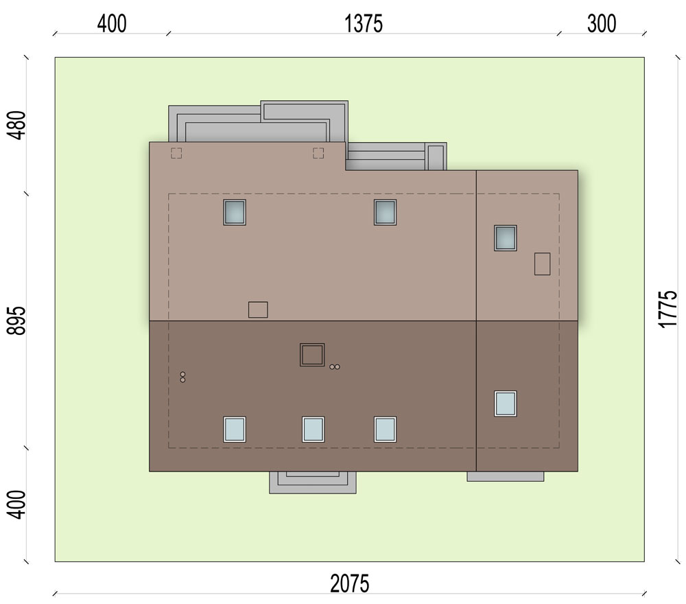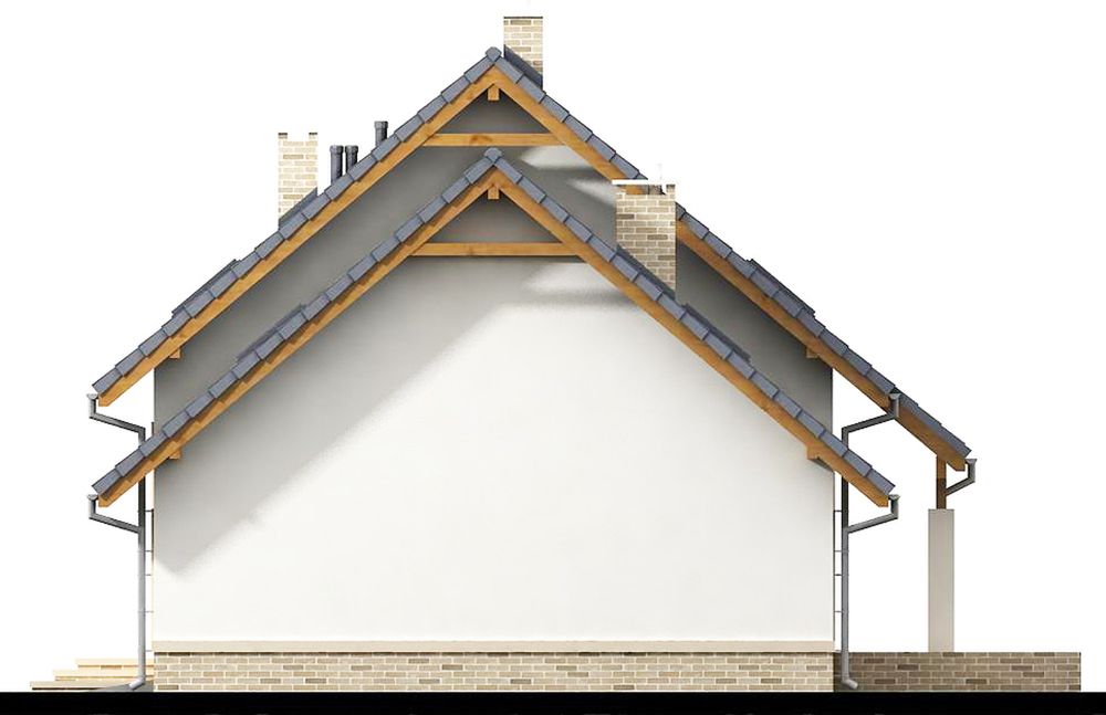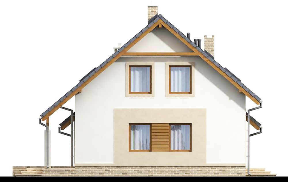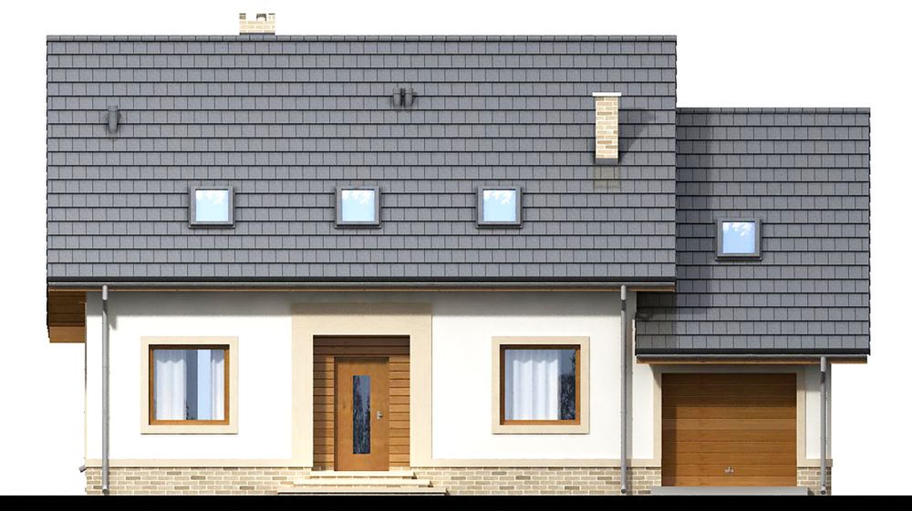 Graficzne opracowanie rzutów poglądowych widocznych na karcie projektu zostało wykonane przez Extradom.pl. Prezentowane przez Extradom.pl wizualizacje wykonane zostały przez autora projektu i należy poczytywać je jedynie za przykład i propozycję wykończenia, wizję architektoniczną autora projektu. Ostateczne wykończenie budynku może nastąpić na wiele sposobów. Szczegółowe rozwiązania zastosowane w oferowanej dokumentacji - w tym również ilość, lokalizacje i wygląd okien, drzwi, kominów - mogą w niewielkim stopniu różnić się od prezentowanej wizualizacji budynku.