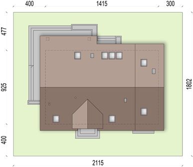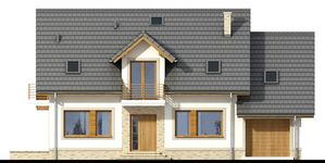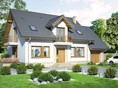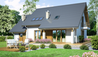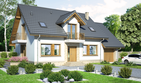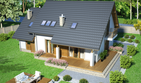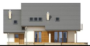 Graficzne opracowanie rzutów poglądowych widocznych na karcie projektu zostało wykonane przez Extradom.pl. Prezentowane przez Extradom.pl wizualizacje wykonane zostały przez autora projektu i należy poczytywać je jedynie za przykład i propozycję wykończenia, wizję architektoniczną autora projektu. Ostateczne wykończenie budynku może nastąpić na wiele sposobów. Szczegółowe rozwiązania zastosowane w oferowanej dokumentacji - w tym również ilość, lokalizacje i wygląd okien, drzwi, kominów - mogą w niewielkim stopniu różnić się od prezentowanej wizualizacji budynku.