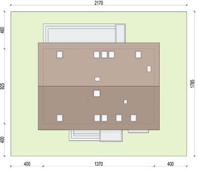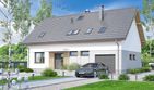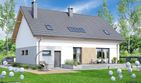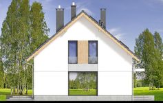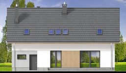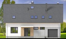 Graficzne opracowanie rzutów poglądowych widocznych na karcie projektu zostało wykonane przez Extradom.pl. Prezentowane przez Extradom.pl wizualizacje wykonane zostały przez autora projektu i należy poczytywać je jedynie za przykład i propozycję wykończenia, wizję architektoniczną autora projektu. Ostateczne wykończenie budynku może nastąpić na wiele sposobów. Szczegółowe rozwiązania zastosowane w oferowanej dokumentacji - w tym również ilość, lokalizacje i wygląd okien, drzwi, kominów - mogą w niewielkim stopniu różnić się od prezentowanej wizualizacji budynku.