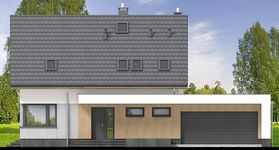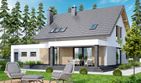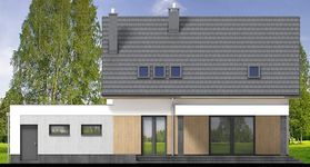Graficzne opracowanie rzutów poglądowych widocznych na karcie projektu zostało wykonane przez Extradom.pl. Prezentowane przez Extradom.pl wizualizacje wykonane zostały przez autora projektu i należy poczytywać je jedynie za przykład i propozycję wykończenia, wizję architektoniczną autora projektu. Ostateczne wykończenie budynku może nastąpić na wiele sposobów. Szczegółowe rozwiązania zastosowane w oferowanej dokumentacji - w tym również ilość, lokalizacje i wygląd okien, drzwi, kominów - mogą w niewielkim stopniu różnić się od prezentowanej wizualizacji budynku.